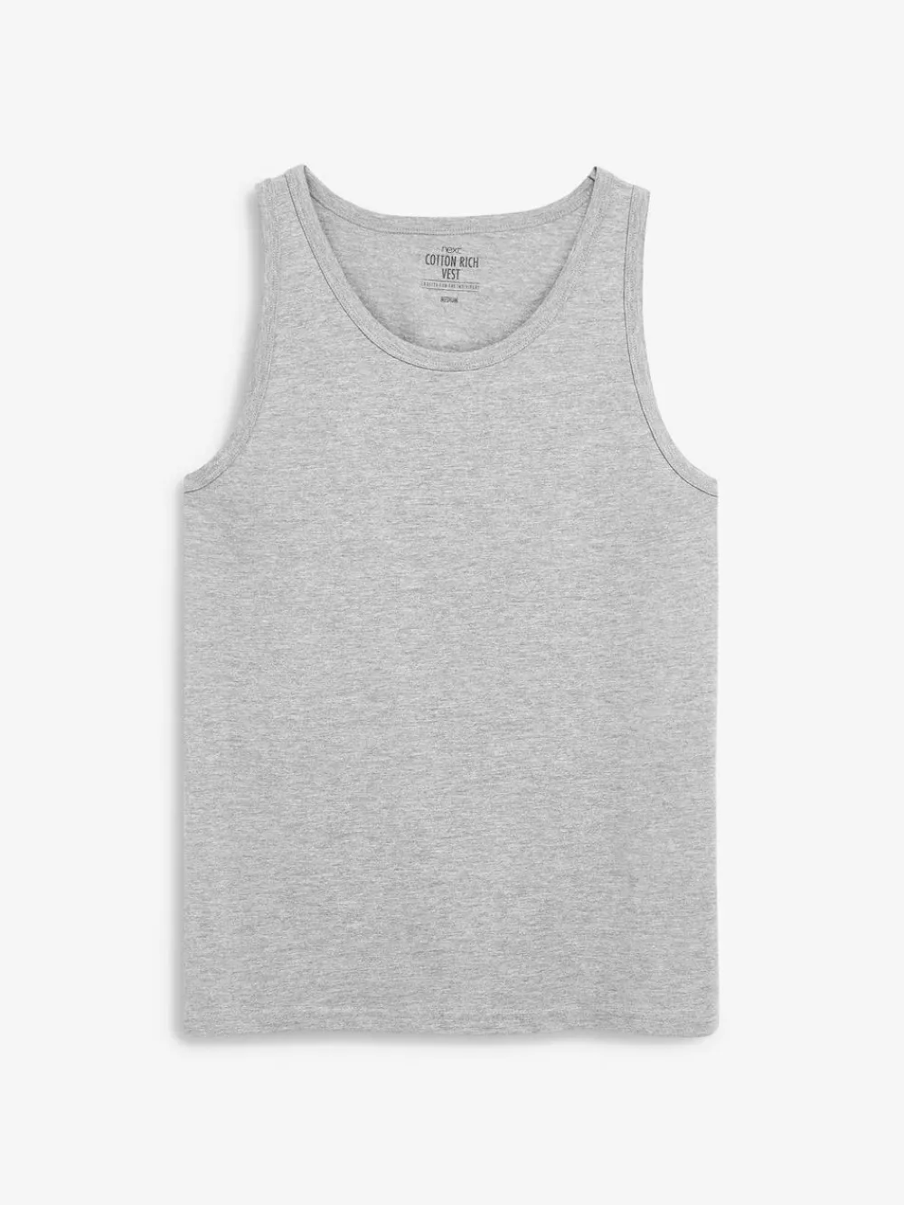 Outlet Next 100% Cotton Layering Vests 5 Pack Black/White/Grey Marl/Navy Blue