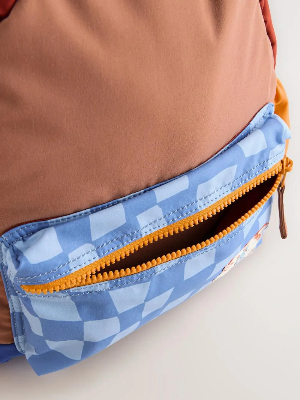 Ready for lift-off! This backpack is a fun and functional accessory for your little one’s everyday adventures. The playful design and vibrant colours will spark their imagination, while the spacious main compartment is perfect for carrying their essentials. It’s a great choice for school or day trips. Playful design Spacious main compartment Side pockets Adjustable straps Top handle Height 33.5cm Width 25cm Depth 12cm Shell 57% Polyester, 43% Elastomultiester. Lining 100% Polyester.