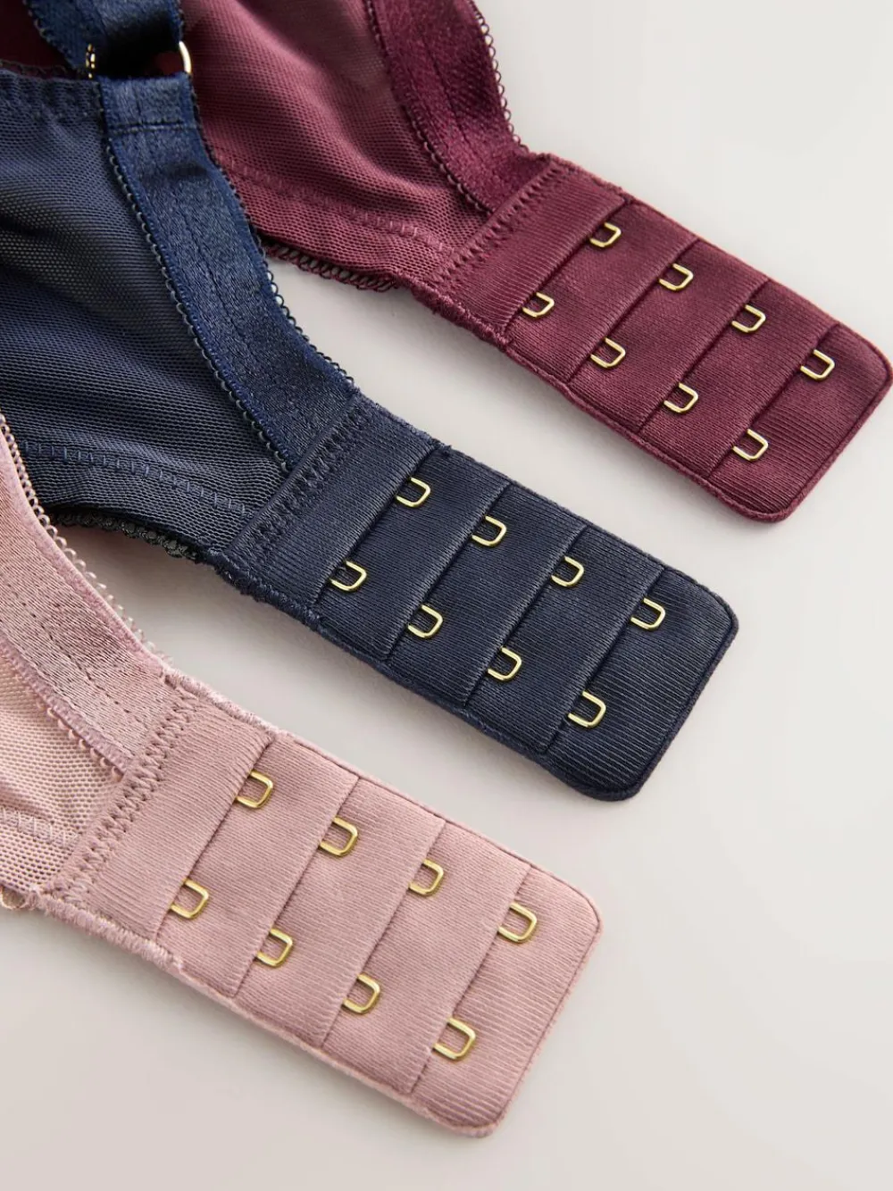 Outlet Next DD+ Lace Trim Non Pad Full Cup Underwired Bras 3 Pack Navy/Berry/Pink