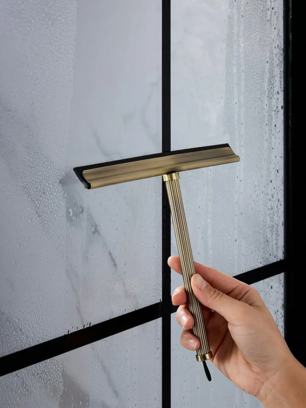 Our Gold Rib shower screen squeegee is perfect for helping to keep your shower screen clean and clear. With a handy hanging loop for easy storage. Rib detail Hanging loop Easy storage Height 17cm Width 24cm Depth 1.5cm 55% Iron, 35% Stainless steel, 10% Plastic. This item has been tested to ensure it is bathroom suitable and protects against corrosion and distortion from steam.