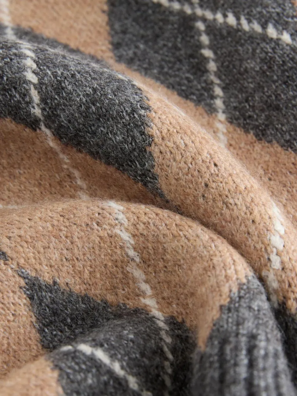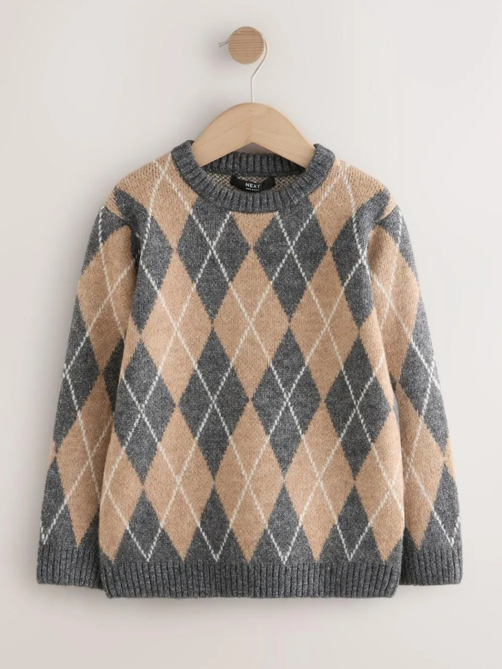 Outlet Next Knitted Crew Neck Jumper (3-16yrs) Charcoal Grey/Tan Brown Argyle