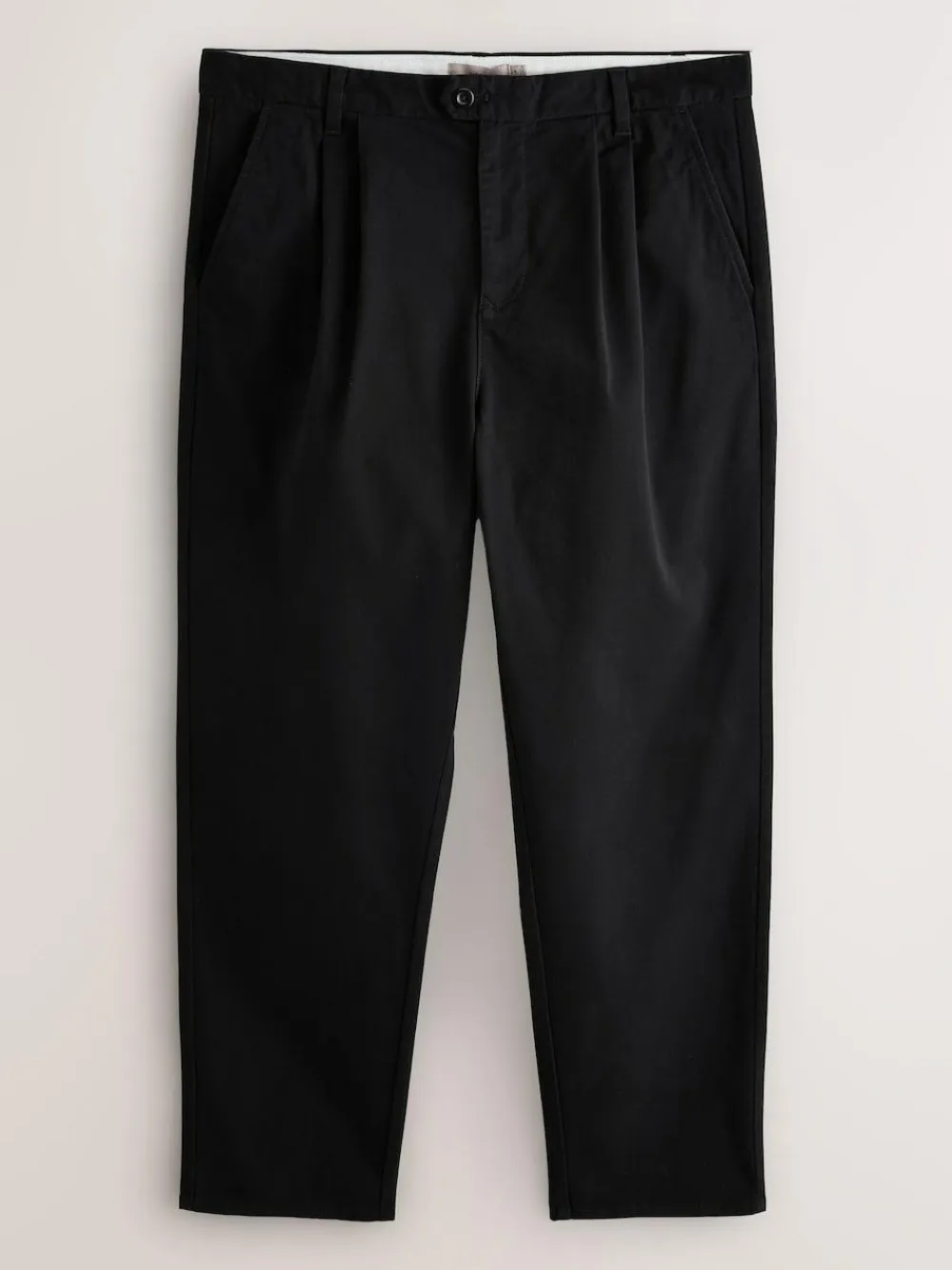 Outlet Next Relaxed Tapered Fit Twin Pleated Stretch Chinos Trousers Black