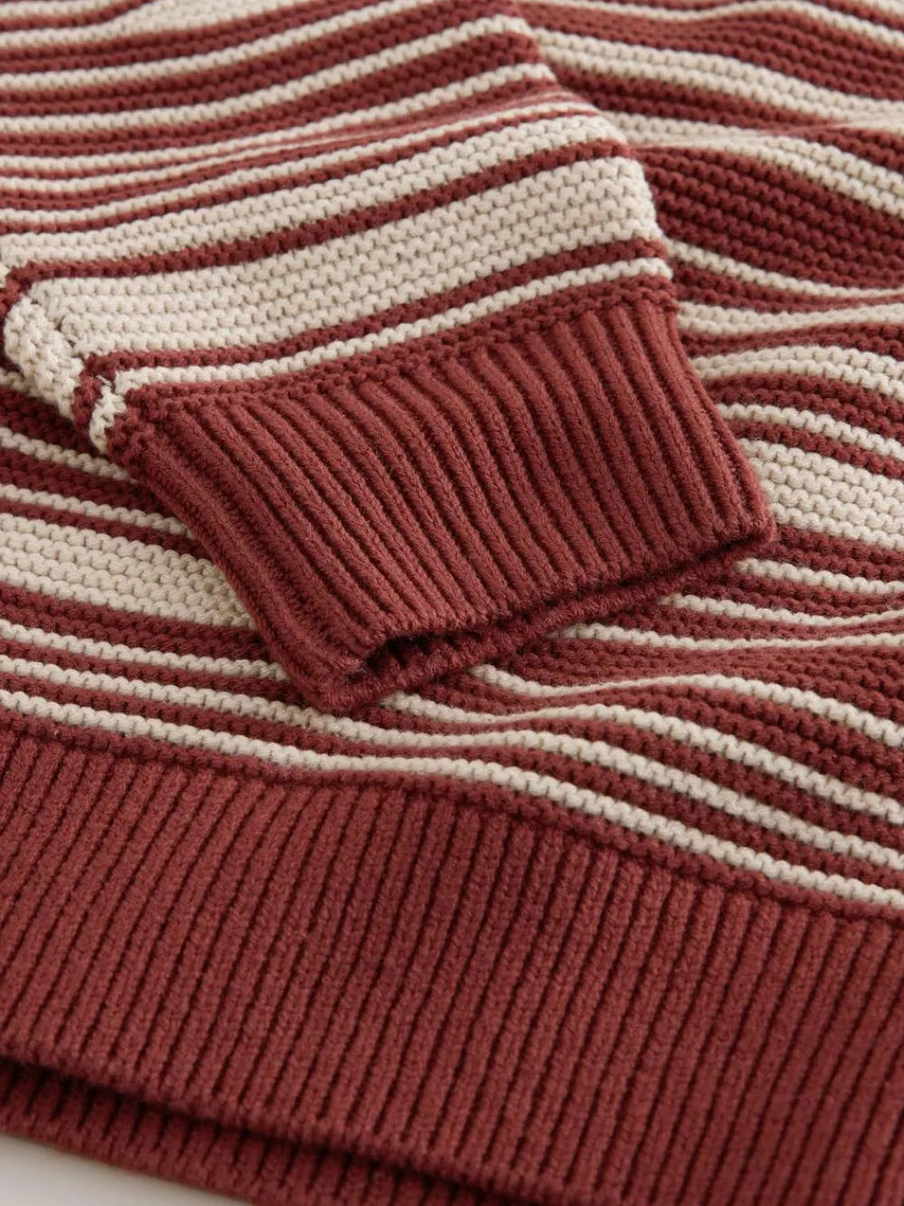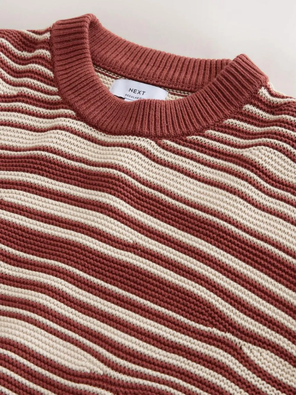 Outlet Next Rust Red Regular Fit Wave Stripe Design Crew Neck Jumper
