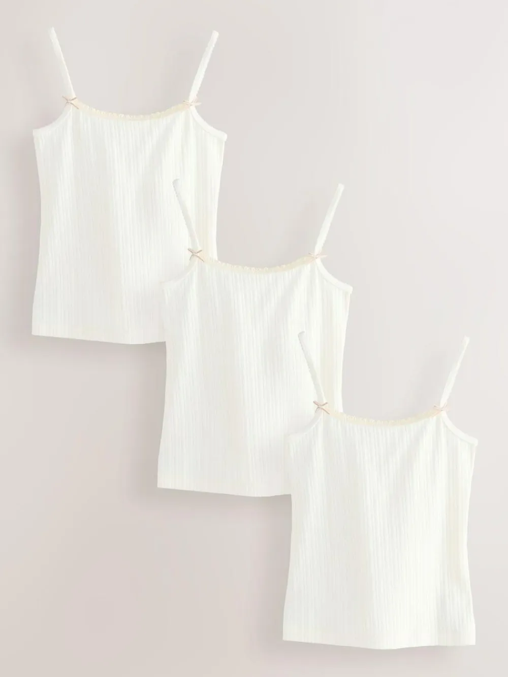 Outlet Next Strappy Textured Cami Vests 3 Pack (1.5-16yrs) Ecru pink stripe