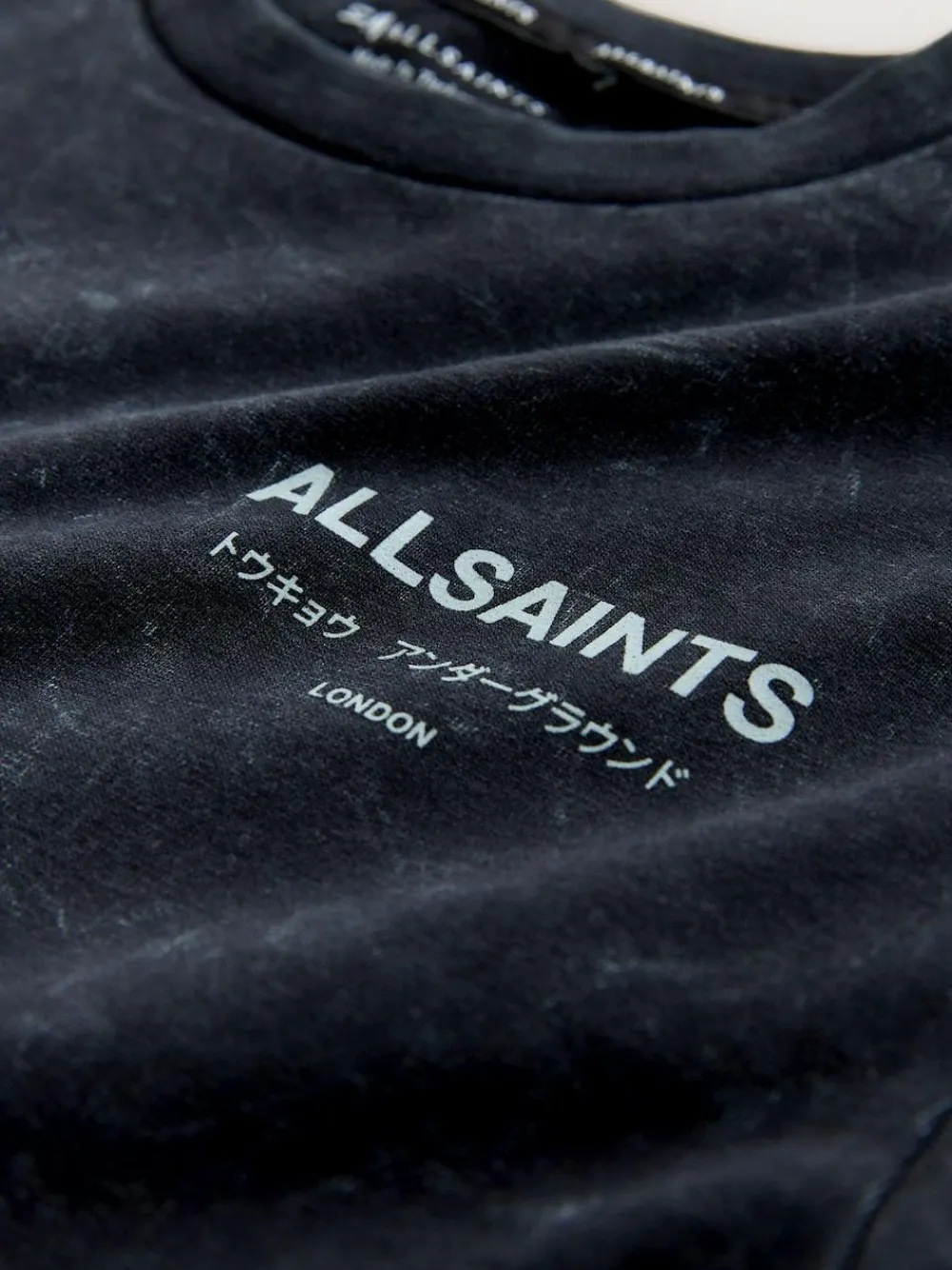 Refresh their t-shirt rotation with the smALLSAINTS Washed Black Underground Oversized Crew T-Shirt. Designed in a soft cotton with an oversized fit, this unisex wardrobe staple also has a crew neck, short sleeves and the AllSaints signature logo on the chest and back. Pair it with jeans and trainers to complete the look. Unisex design 100% cotton AllSaints signature logo on chest and back Oversized fit Machine washable. Main 100% Cotton. Neck 97% Cotton, 3% Elastane.