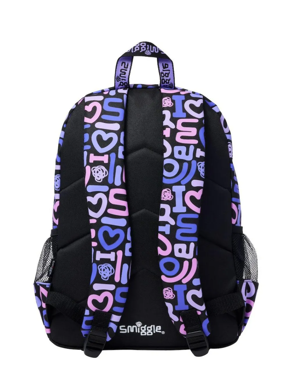 Calling all Smiggle super fans! Our Smiggler collection is perfect to show off some Smiggle love, featuring timeless and ageless prints on all our classic Smiggle silhouettes! In need of a new backpack? Look no further, our Smiggler Classic Backpack is the perfect pick! It has three zipped compartments to stash your stationery, tech, snacks and more! Plus dual drink bottle sleeves, padded and adjustable shoulder straps and an oversized, woven zip pull. Awesome for school days, after school activities and so much more. Height 42cm Width 30cm Depth 13cm Outer 50% Polyester, 50% PU. Inner 100% Polyester.