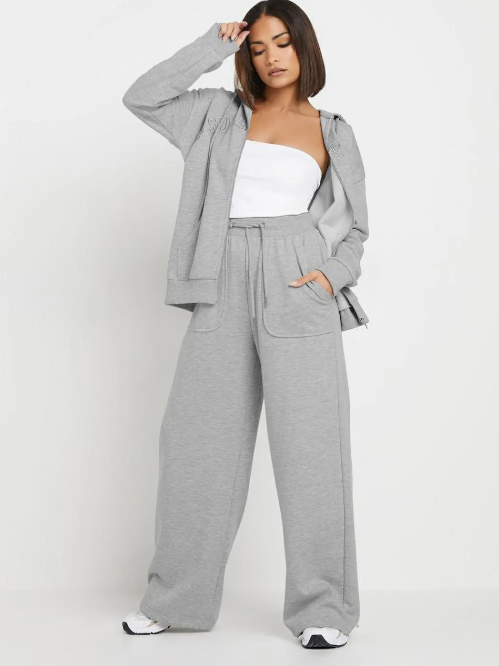 PixieGirl Petite Grey Pocket Patch Wide Leg Joggers^Women Leggings & Sweatpants
