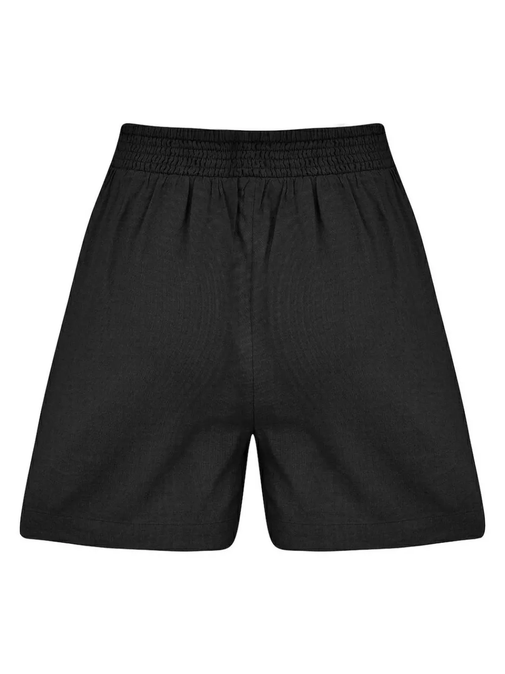 Crafted from lightweight, breathable linen fabric the Bree High-Waist Linen Blend Elasticated Shorts are designed for those who appreciate a high waist fit that not only flatters but also ensures a comfortable and secure feel with its elasticated waistband. The breathable linen fabric provides a cool and breathable sensation against your skin, making these shorts an ideal choice for warm-weather days. Find the perfect holiday ensemble when you pair the Bree shorts with the Wren. Button Through Linen Blend Long Sleeve Shirt Machine washable. 75% Viscose, 25% Linen.
