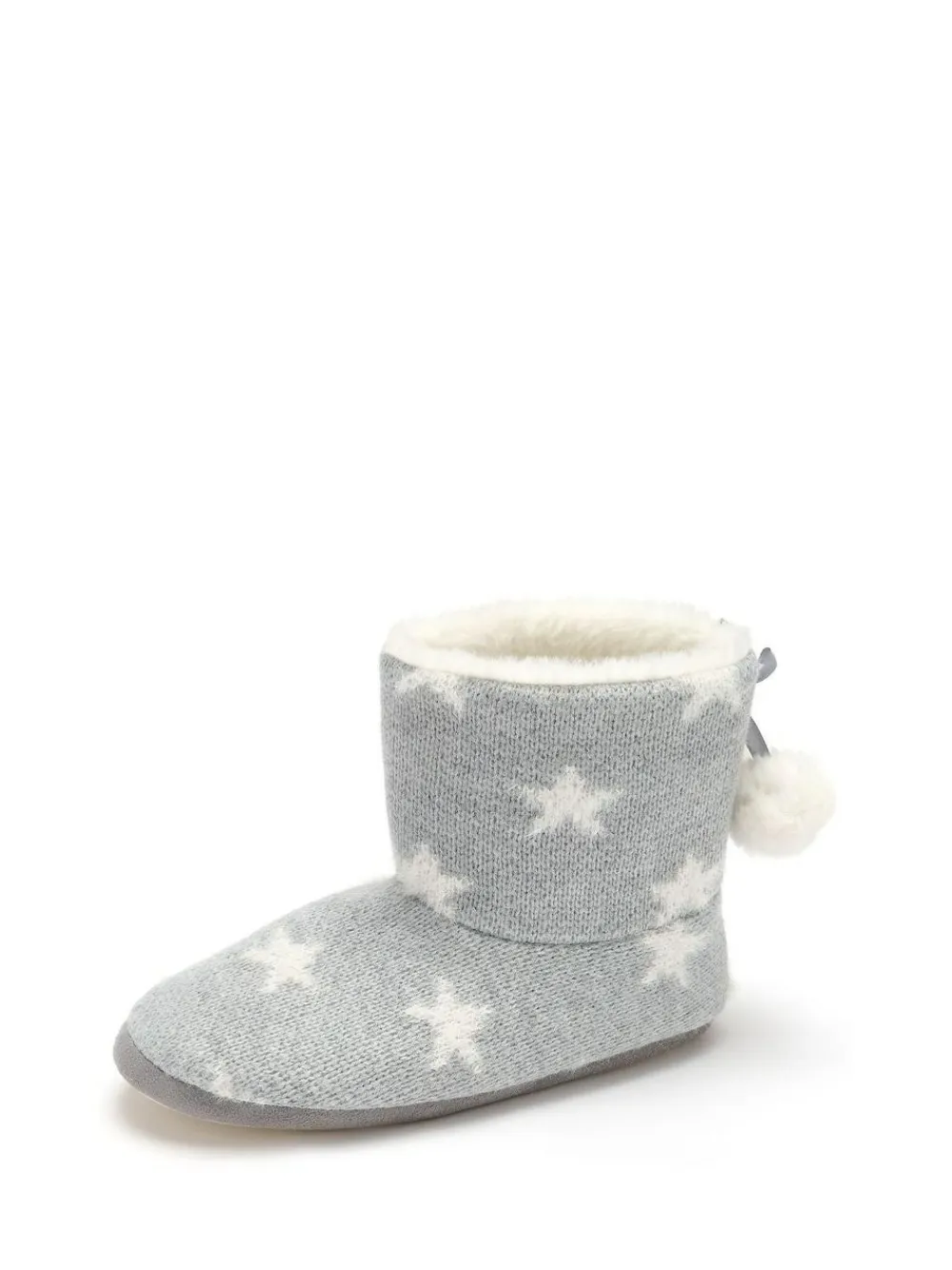 Step into comfort with the Star Knit Faux Fur Lined Bootie Slipper. The cosy bootie slippers feature a charming, knitted star design with playful pom pom detailing. Inside, you’ll find a plush Sherpa lining that keeps your feet warm and snug even during the coldest days. The gripped sole ensures stability, making them perfect for lounging around the house. Elevate your nightwear collection with the Star Knit Faux Fur Lined Bootie Slippers. 80% Acrylic, 20% Polyester.