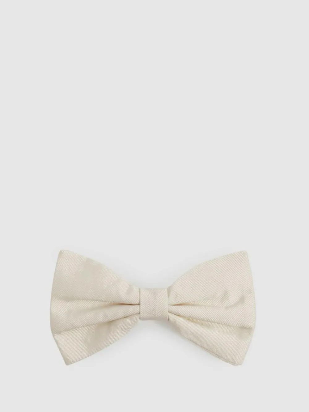 Add the perfect finishing touch to any formal ensemble with the light ivory Boyle bow tie. Crafted from luxurious silk grosgrain, it features an adjustable strap for a personalised fit and secures effortlessly with a hook-and-eye closure. 100% silk Grosgrain weave Adjustable strap Hook-and-eye closure Width 13.5cm Dry clean only. 100% Silk.