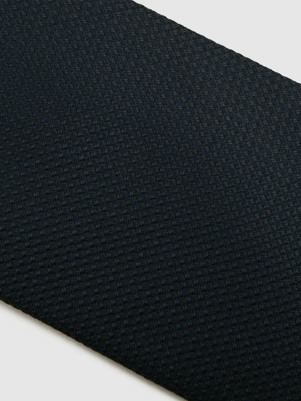 This navy tie is woven from a silk blend into a unique and lightly textured design. Silk blend Textured Width 8cm Dry clean only. 68% Polyester, 32% Silk.