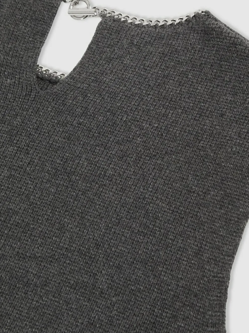 The Nina vest is spun from a soft wool-blend with a touch of cashmere for added softness. A silver-tone chain necklace lends an elegant touch, whilst a wide rib-knit hem hugs the hips. Wool-blend knit Chain necklace trim with T-bar closure Keyhole to reverse Rib-knit hem Hand wash only. Main 46% Wool, 32% Viscose, 16% Nylon, 5% Cashmere, 1% Elastane. Trim 45% Wool, 31% Viscose, 18% Nylon, 5% Cashmere, 1% Elastane.