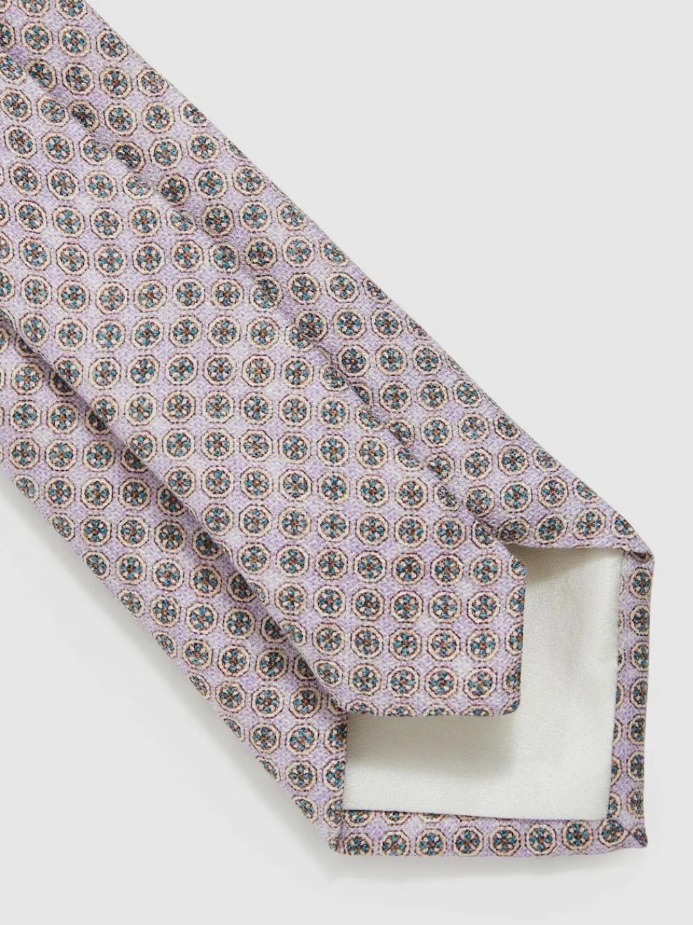 The soft pink Santo tie is crafted from 100% silk with a refined woven finish, showcasing a sophisticated small medallion print that adds a classic touch to formal looks. 100% silk Woven finish Small medallion print Width 8cm Dry clean only. 100% Silk.