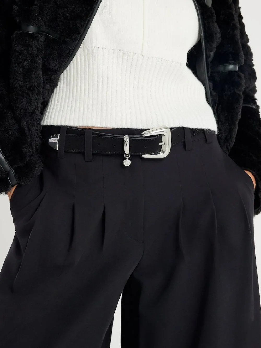 River Island Black Bubble Buckle Suede Belt^Women Belts