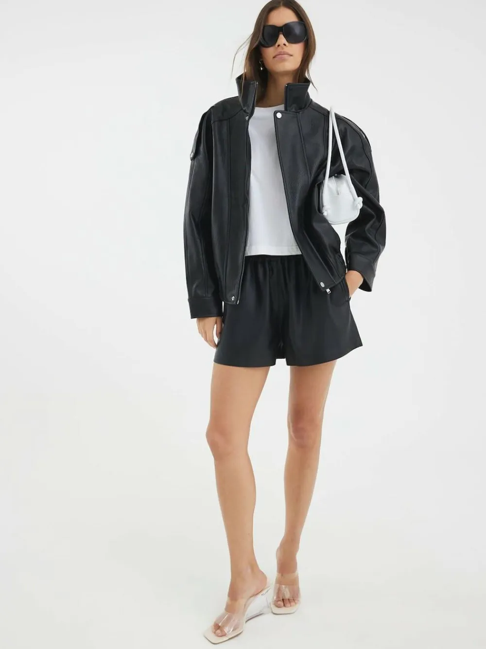 River Island Black Elasticated Faux Leather Shorts^Women Shorts