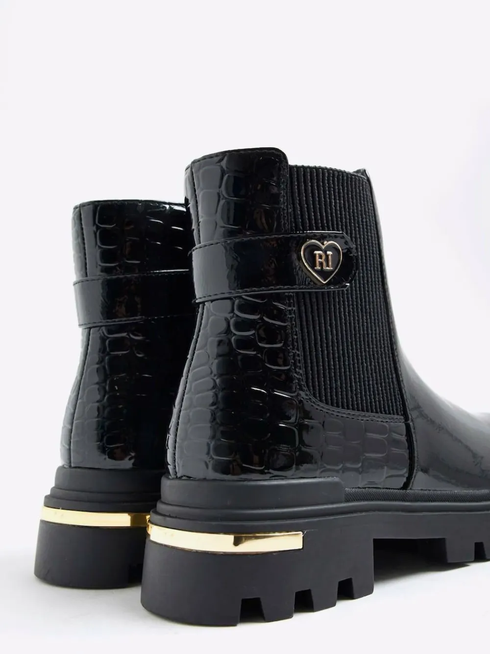 River Island Black Patent Heart Strap Chelsea Boots^ Boots & Wellies