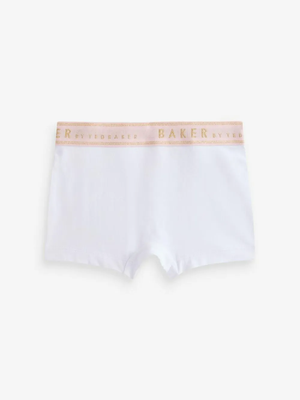 Treat her to everyday comfort and style with the Baker by Ted Baker boxers 5 pack. Crafted from soft cotton with added stretch, these boxer briefs feel gentle against the skin for all-day wear. Each pair features the signature Baker elastic waistband ensuring a secure and comfortable fit. A practical and stylish essential for girls. 5 pack Soft cotton fabric Elastic branded waistband 5 x Knickers 95% Cotton, 5% Elastane.