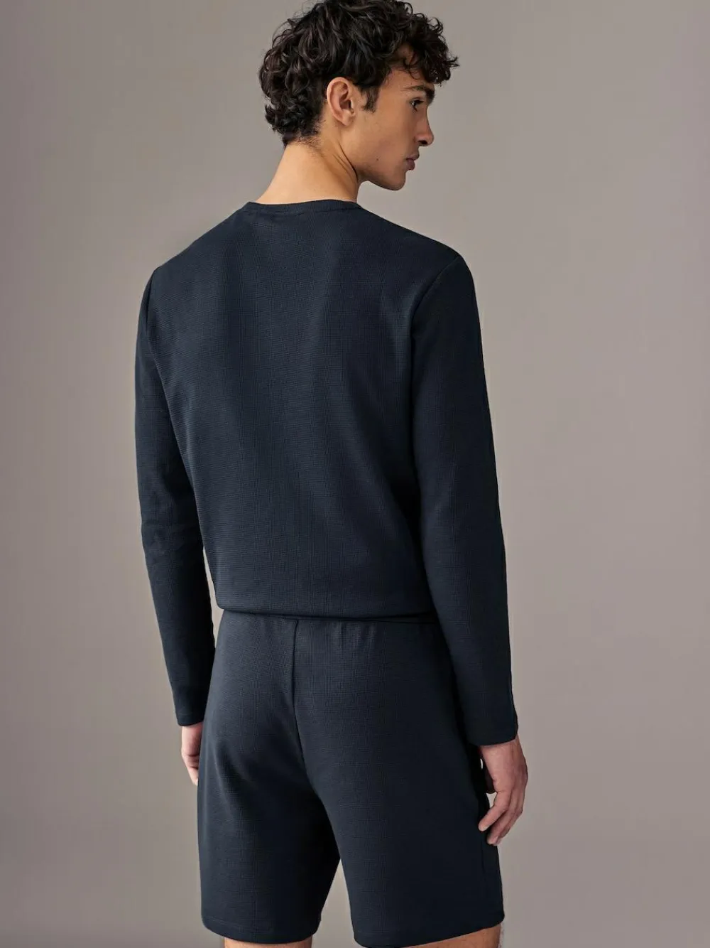 Elevate your casual style with these BOSS Navy Blue Waffle Shorts. Crafted from premium waffle-textured fabric, these shorts offer both comfort and sophistication. The textured design adds a touch of visual interest, making them a versatile choice for a refined yet relaxed look. Perfect for leisurely days or casual outings, these shorts are a must-have in any modern wardrobe. 60% Cotton, 40% Polyester.
