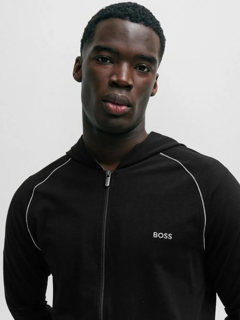 A signature zip-up sweatshirt with an embroidered logo by BOSS. Crafted in stretch jersey This regular-fit layer features contrast piping 95% Cotton, 5% Elastane.
