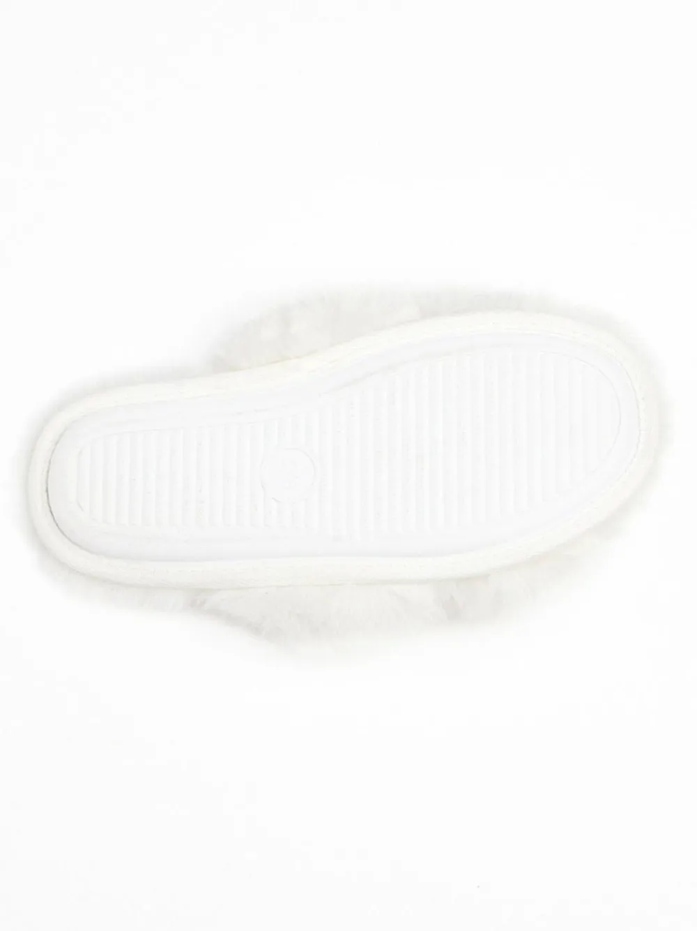 Cross band slippers, Super soft plush faux fur, fluffy Open toe design. Upper – 100% Polyester, Lining. and Sock – 100% Polyester. Sole – 100% Rubber.