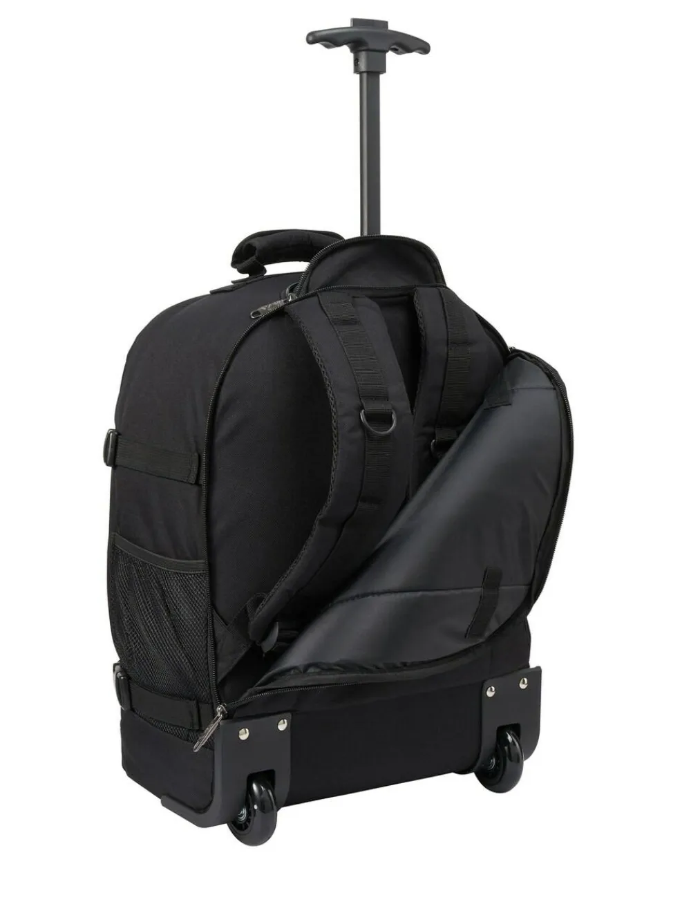 Flies free on Easyjet. The perfect size (45x36x20cm) for EasyJet’s new ‘free’ underseat cabin luggage rules. Hand luggage compatible with ALL other major airlines. Use as a trolley or a backpack thanks to useful hybrid design. Pack more than you think into spacious 30 Litre interior Suitcase-style opening and flexible soft-sided design allow ultimate packing freedom Lightweight design weighs just 1.6kg Comfortable and easy to wear with extensive comfort padding Front Organiser Pocket with compartments for an iPad, travel documents, pens and tickets Quick access pocket on front of bag Padded top carry handle Height 45cm Width 36cm Depth 20cm 100% Polyester.