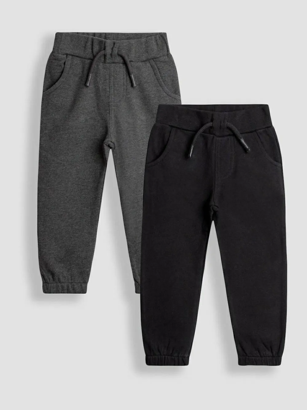 Made to wear and play for the day! These 2-pack relaxed joggers are a practical pick (especially when you need a spare!) with an elasticated waistband and drawstring for adjustable movement and stretch. Simply pull on and be ready for playdates, park trips, and beyond! 2-pack 1 charcoal, 1 grey Cuffed legs Elasticated drawstring waist 2 side pockets Machine washable 100% Cotton.
