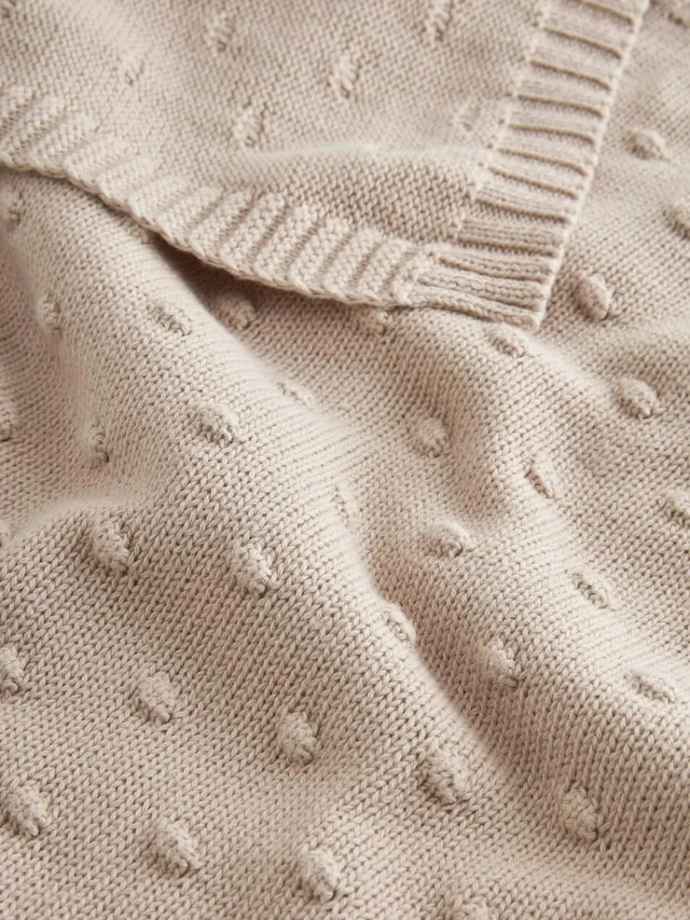 This beautiful baby blanket is the perfect gift for any new or expecting parent. Its soft, cosy knit and charming bobble detail are perfect for snuggling up at home or keeping babies warm in their pushchair. Use with caution to ensure your baby doesn’t overheat, and avoid covering their face while sleeping. Bobble detail Soft knitted fabric Ideal for pushchair or snuggling Beautiful gift Ribbed edge 100% Cotton. Warning: Keep away from fire and flames.