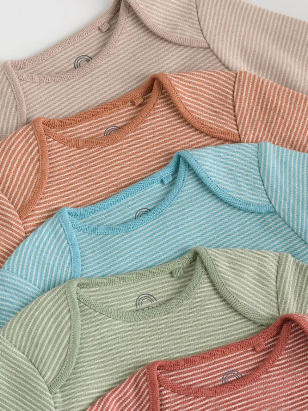 Stock-up on everyday staples for your baby, with this 5-pack of cotton bodysuits. Each bodysuit has an envelope neck opening, long sleeves and a popper bottom fastening. 5-pack Envelope neck Popper bottom fastening Machine washable. 5 x Bodysuit 100% Cotton. Warning: Keep away from fire and flames.