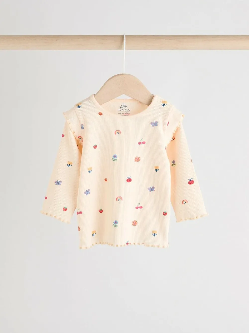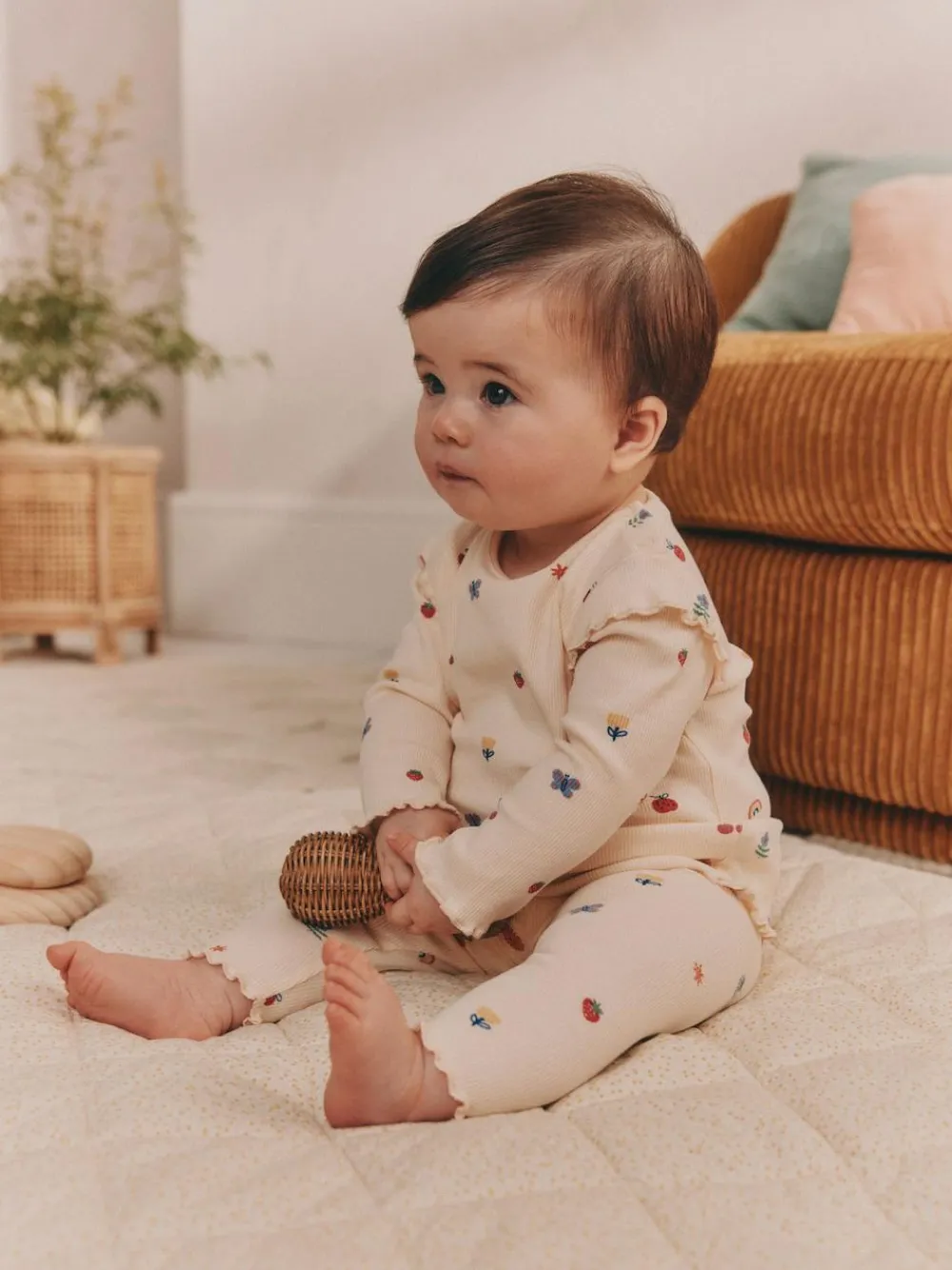 This Baby Top and Leggings 2 Piece Set is a cozy and charming choice for playdates or everyday wear. Crafted from a cotton blend with added stretch, this duo is designed for maximum comfort and lasting appeal. Two-piece set including top and leggings. Cosy cotton blend fabric with stretch. Frill shoulder detail on the top. Lettuce hem finish on cuffs and hem. Nickel-free poppers for easy dressing. No harmful chemicals or dyes used. Machine washable. T-shirt and Leggings 95% Cotton, 5% Elastane. Warning: Keep away from fire and flames.