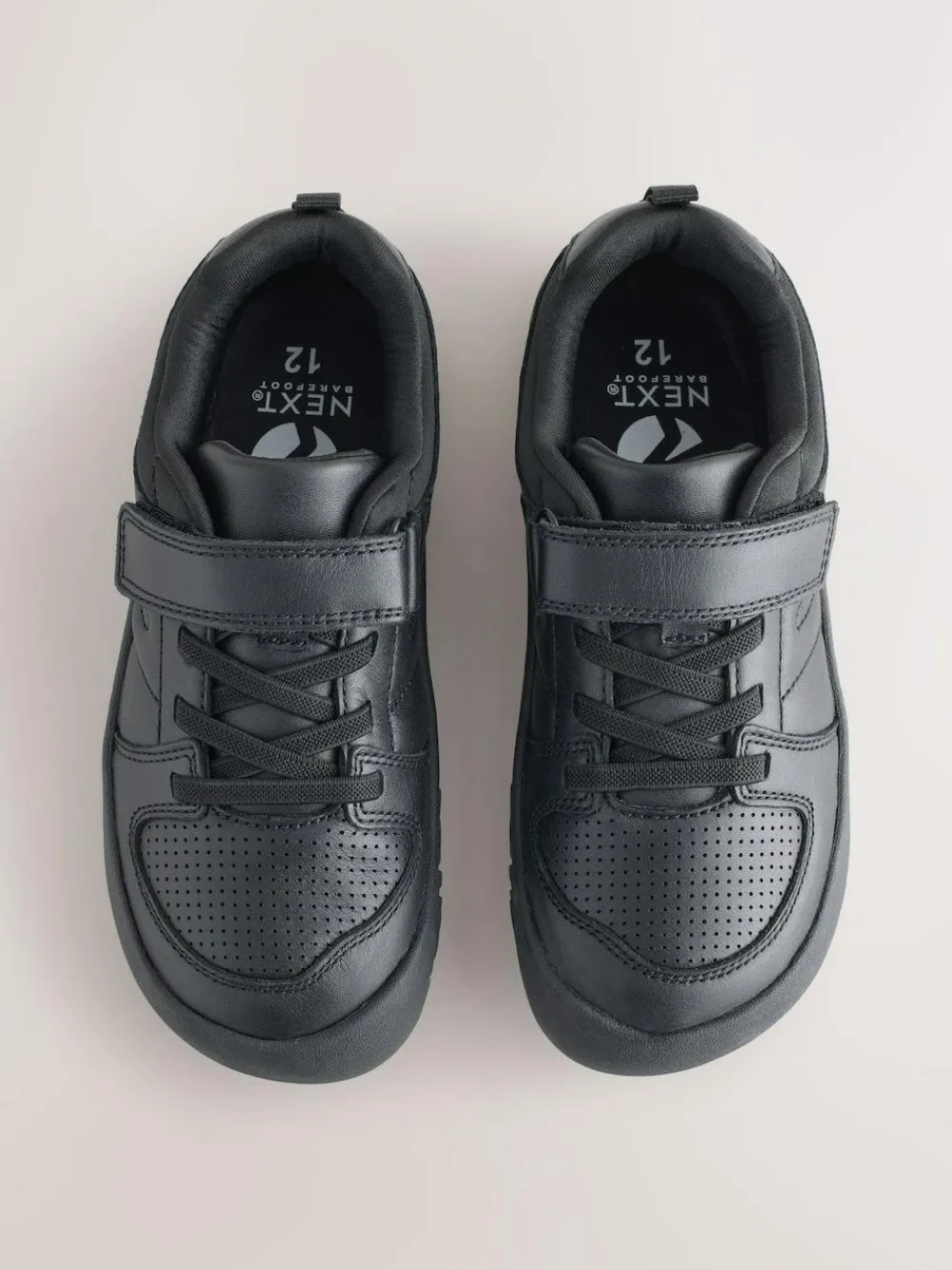 Introducing our new Barefoot school range. Specially designed with a wider toe box to allow toes to spread naturally. Our slip resistant, super flexible sole mimics the natural position of bare feet. With full grain leather uppers and a lightweight, stitch and turn construction, these school shoes are the perfect choice for the customer looking for a more natural fit. Micro fresh treated linings to fight odour causing bacteria, containing the biocide silver chloride. Full-grain leather upper Touch fastened strap Elasticated laces Flexible Barefoot sole *Micro fresh treated linings to fight odour causing bacteria – contains the biocide silver chloride View the How to Measure and Fit at Home Guide Upper – Leather, Textile, Lining & Sock – Textile, Sole – Other Materials.