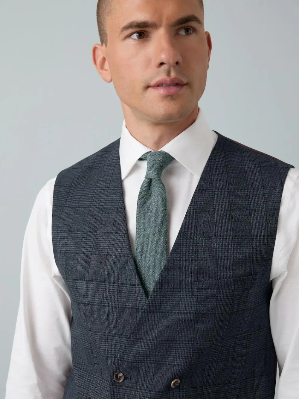 Sale Next Blue Tailored Fit Trimmed Check Suit Waistcoat
