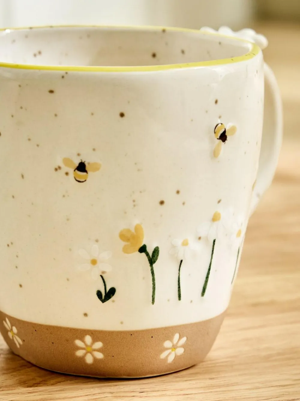 Add a touch of spring to your mug collection this season with our Maisie Floral Mug. This beautiful mug features an embossed bee and flowers around the mug, a wax-resist bottom with a hand-painted flowers, a hand-painted lip, and a charming 3D flower on the handle. There is so much to love about this mug, making it perfect for your spring hot beverages this season. Height 14cm 100% Stoneware.