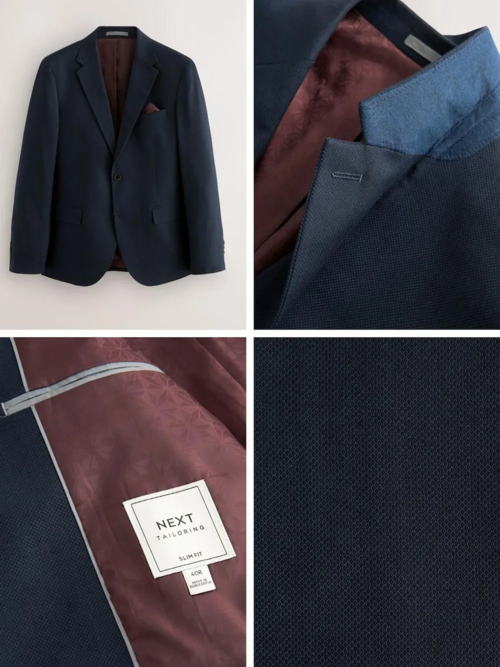Sale Next Navy Blue Slim Fit Textured Suit Jacket