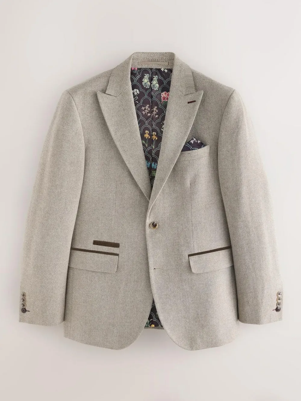 Sale Next Neutral Slim Fit Nova Fides Italian Wool Blend Trimmed Textured Suit Jacket