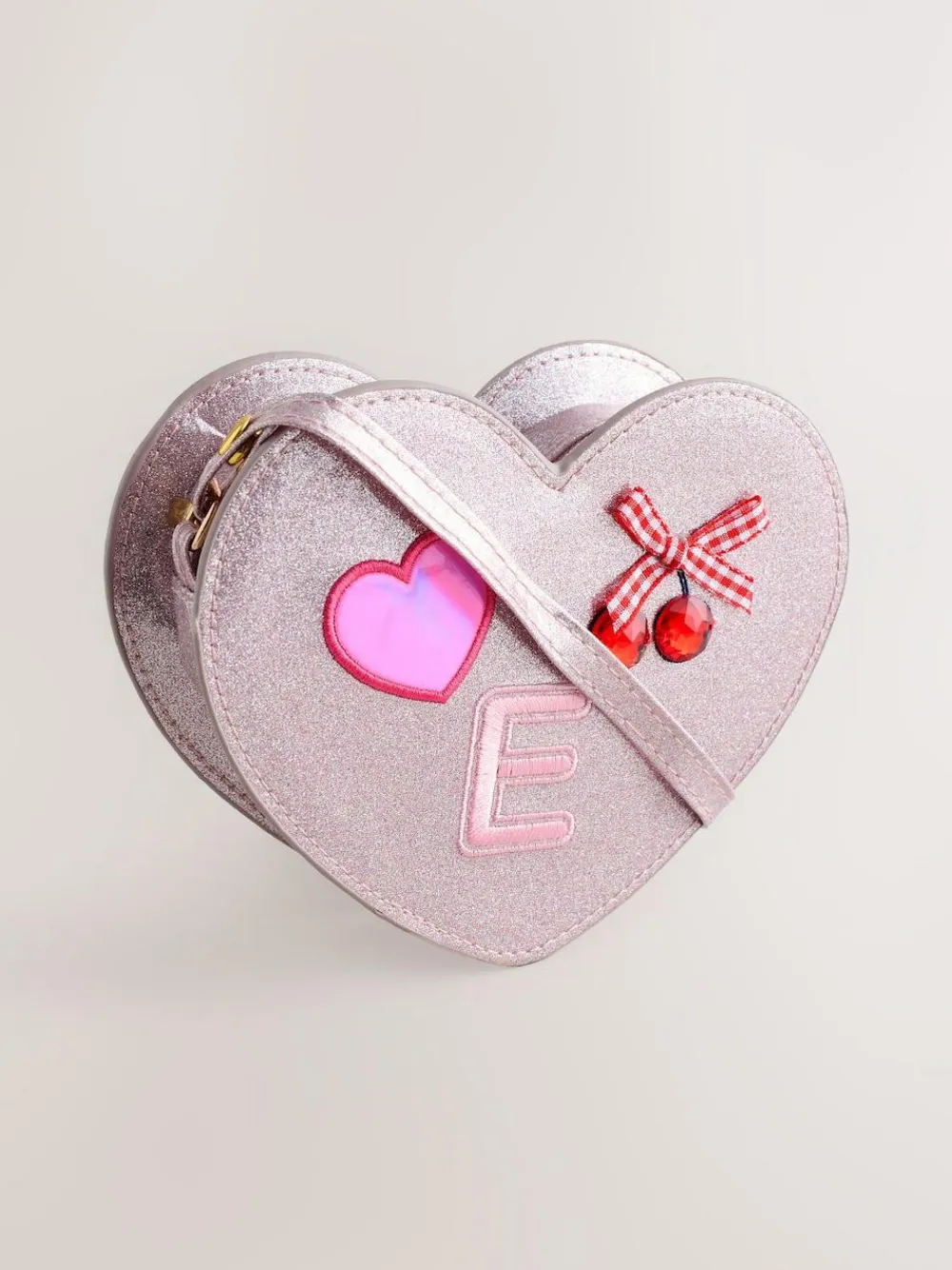 This charming Silver/Purple Gem Heart Initial Bag is the perfect accessory for gifting or personalisation. Featuring sweet gem detailing and a fun heart shape, this bag is a lovely statement piece, and is suitable from 3 years for little ones. Heart shaped initial bag Gem detailing Suitable from 3 years 12cm x 4cm x 15cm dimensions Warning! Choking And Strangulation Hazard – Not suitable for children under 36 months due to small parts long handles Height 12cm Width 15cm Depth 4cm 100% PU.