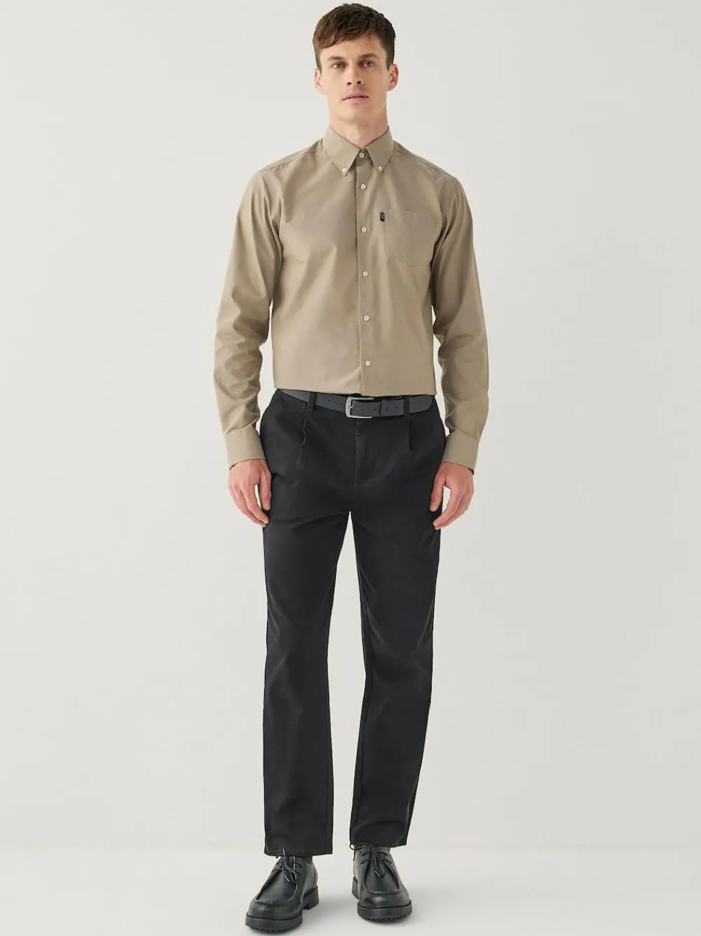 These classic chinos are designed in a regular tapered fit, offering a contemporary silhouette that is both versatile and comfortable. Crafted from a cotton rich, stretch fabric, they provide ease of movement while maintaining a crisp look throughout the day. The design features single pleated detailing at the front for a refined aesthetic, complete with a standard zip fly, button fastening and belt loops. These trousers are an essential styling piece for any modern wardrobe. Single pleat: The single-pleat trouser has one fold of fabric, or pleat, on each side of the waistband that runs down the front. This design provides a balance between classic style and modern tailoring. Cotton rich Stretch fabric Tapered fit Machine washable. 98% Cotton, 2% Elastane.