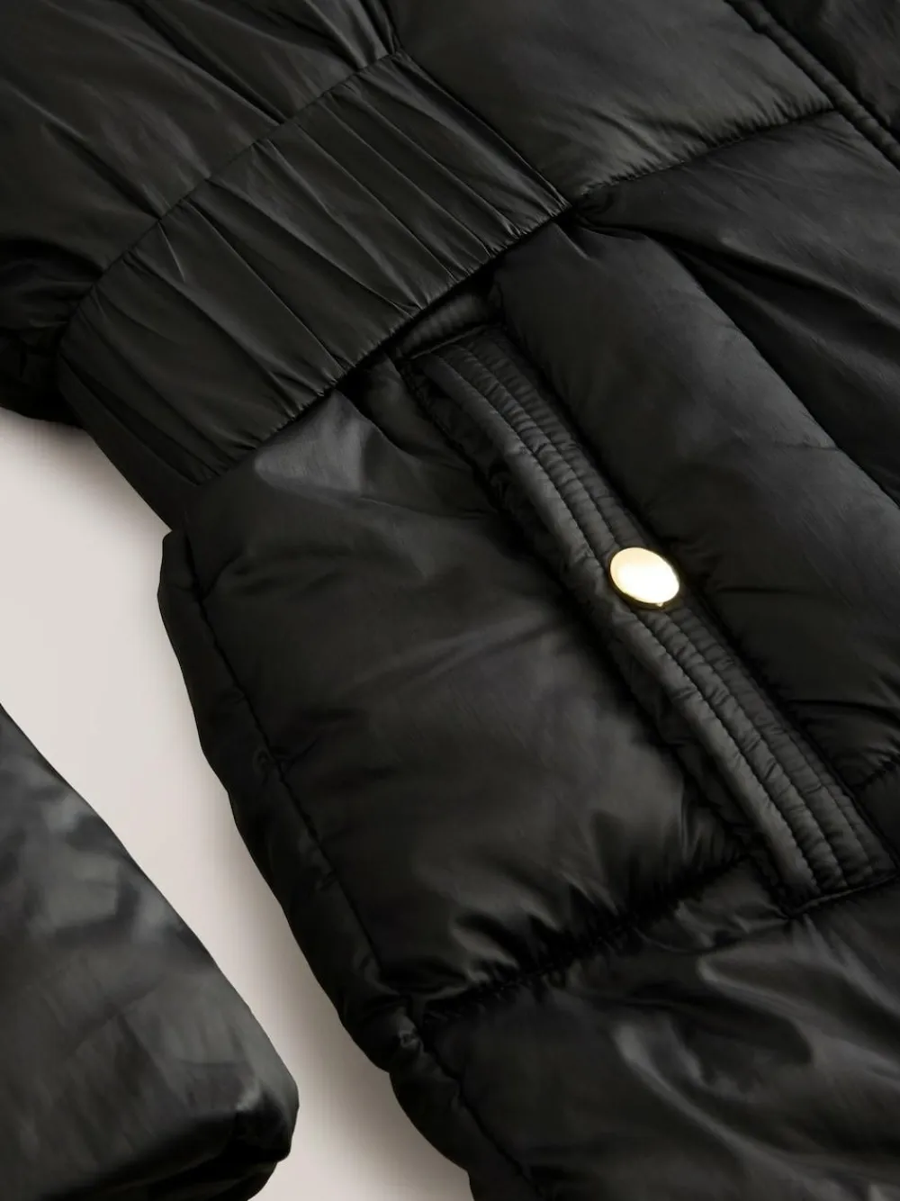 Stay warm and fabulous all winter in this shower-resistant, padded longline coat. Featuring a flattering waisted fit and a cosy hood, it’s designed for ultimate comfort and style. The popper-fastened side splits and faux fur trim collar elevate this cold-weather essential for a chic finish. Longline length Shower-resistant finish Faux fur trim collar Popper and zip fastening Side splits with poppers Waisted detailing Elasticated cuffs Side pockets with poppers Regular centre back neck to hem 50.5″ / 128cm. Machine washable. Main 55% Recycled polyester, 45% Nylon. Lining 100% Recycled polyester. Wadding 100% Recycled polyester. Items with the curve logo are available in sizes 18 and above., Our tall collection is designed to fit women 5’10” and above. This has been proportionally increased through the body, leg and sleeve to achieve the perfect fit. Available in sizes 8-20.