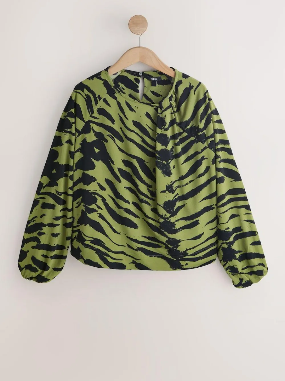 Sale Next Twist Neck Long Sleeve Blouse Green Animal Print