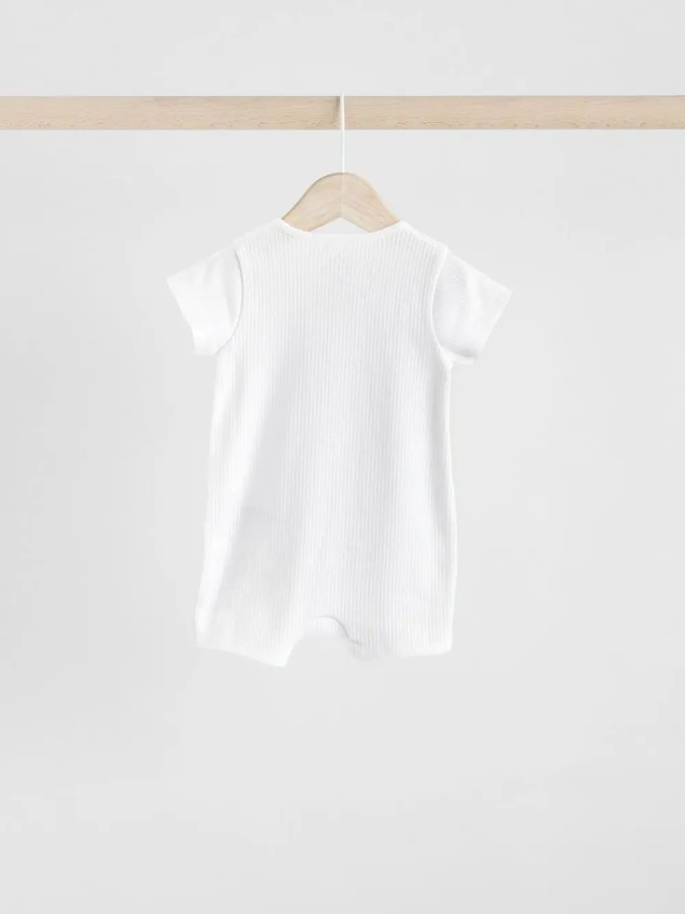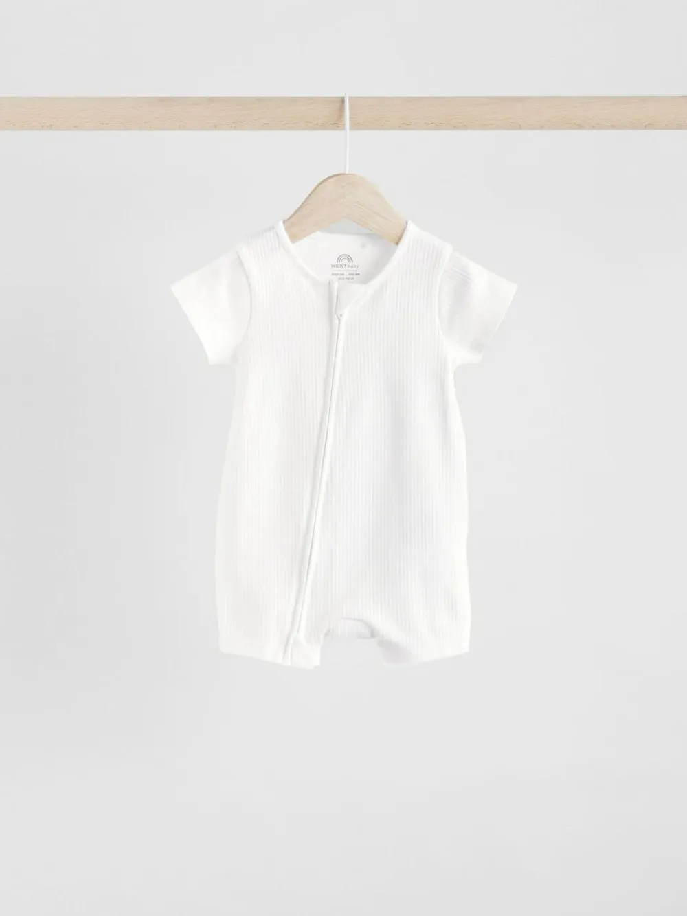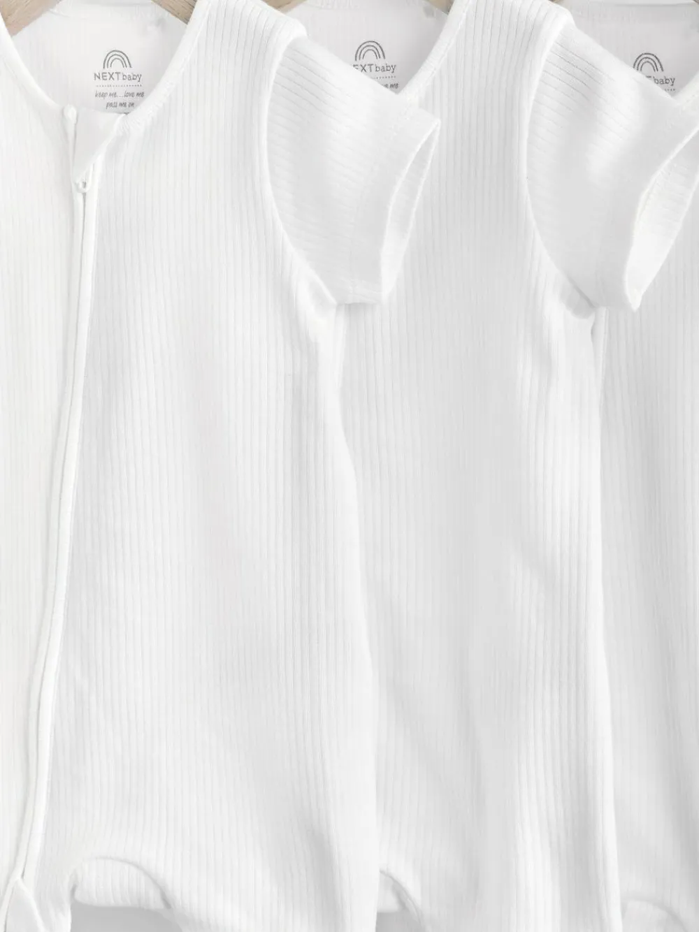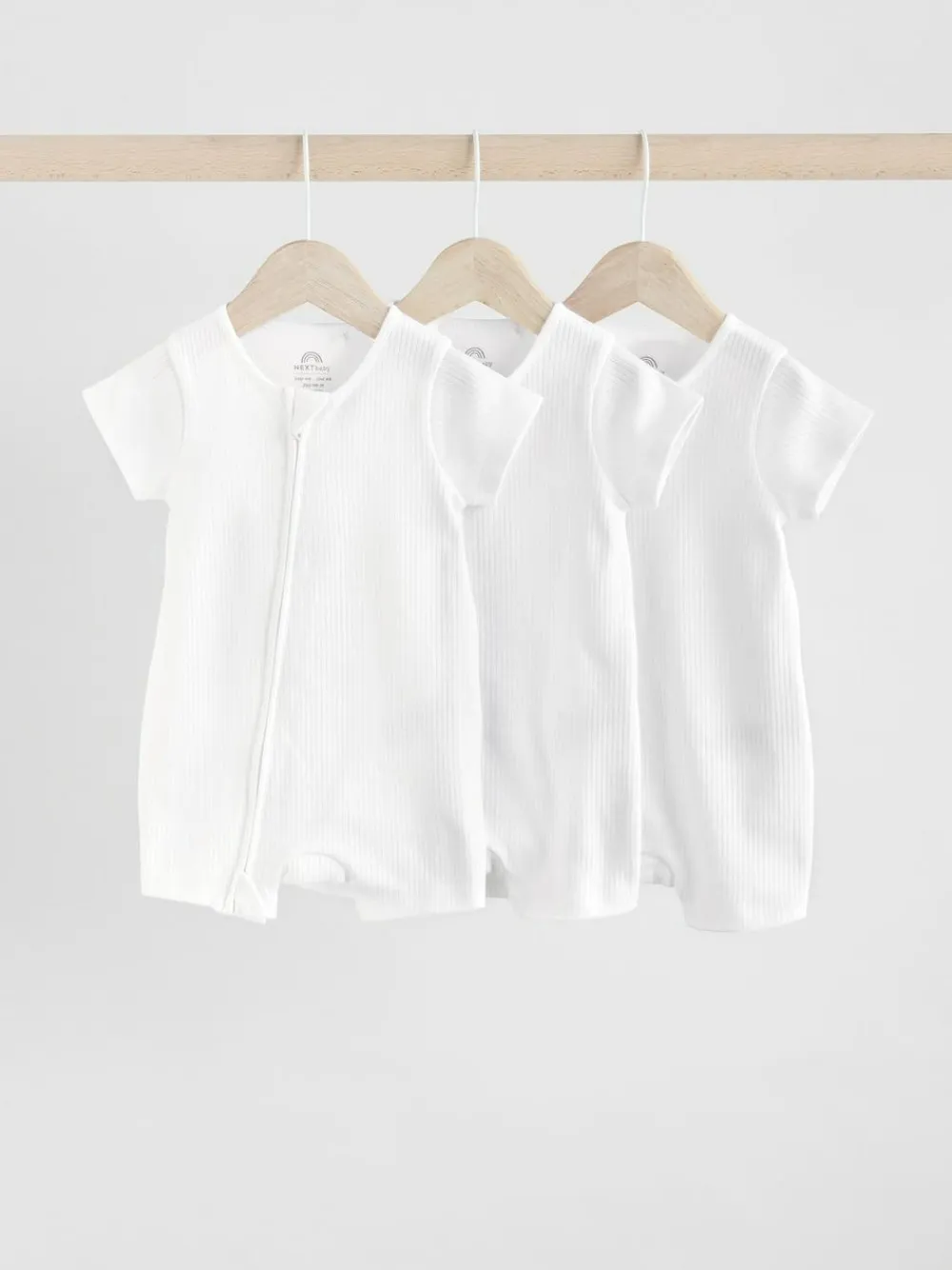This 3-pack of white sleepsuits are made from a comfortable cotton fabric that’s soft on their skin, with a two-way zip fastening for easy wear, short sleeves and a ribbed textured, finished with a round collar. Pack of 3 Two-way zip Full-length zip for easy changing Supersoft cotton rib Machine washable. 3 x Sleepsuit 100% Cotton. Warning: Keep away from fire and flames.