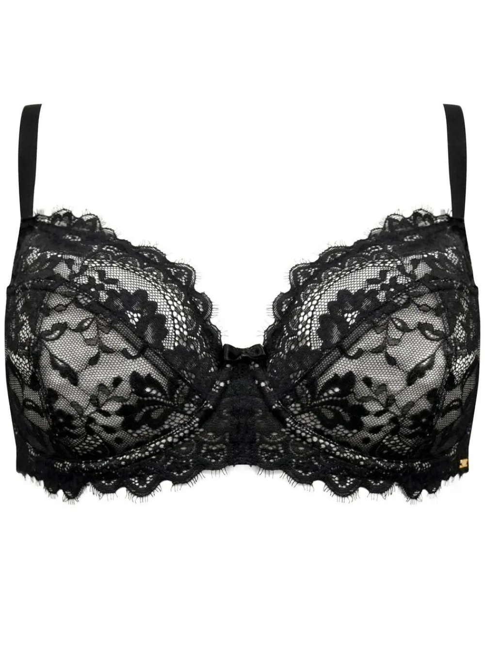 Experience a little slice of heaven with this underwired bra in an all-over eyelash lace, offering support and a fantastic shape. The luxe gold hardware adds some luxury to this already beautiful non-padded style. Combine with the matching lace briefs for a complete feminine look. 79% Nylon, 21% Elastane.