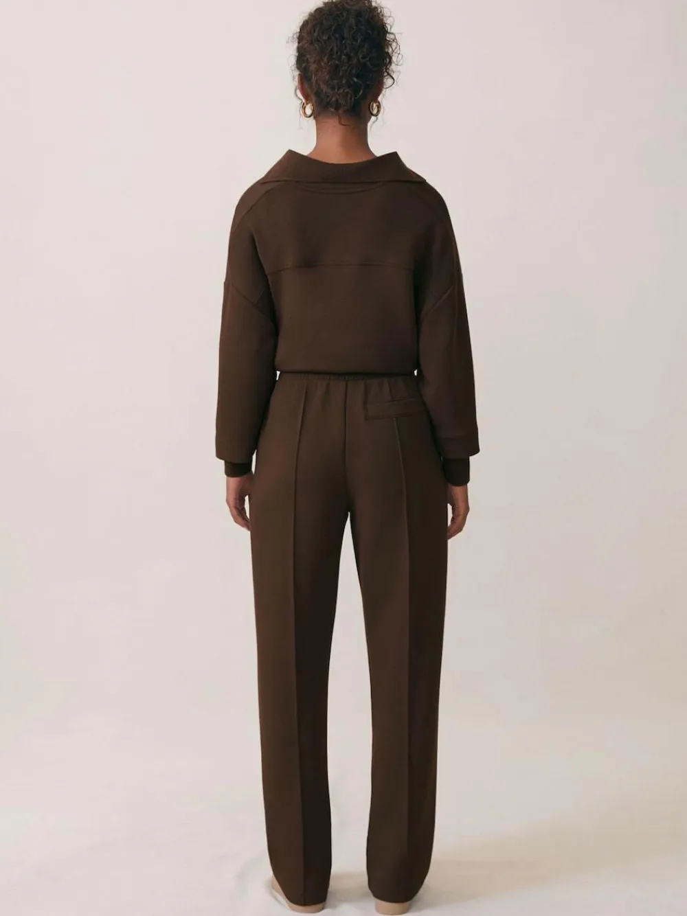 The Bernie joggers are engineered for comfort in our premium cloud interlock, a silky-soft modal-blend jersey with a beautiful drape. A wide-leg fit enhances the relaxed silhouette, with pintucks and a drawstring waist adding subtle structure.Modal-blend interlock jerseyWide legPintucksElasticated drawstring waistAngled side pocketsBack welt pocket Machine washable. 49% Modal, 46% Polyester, 5% Elastane.