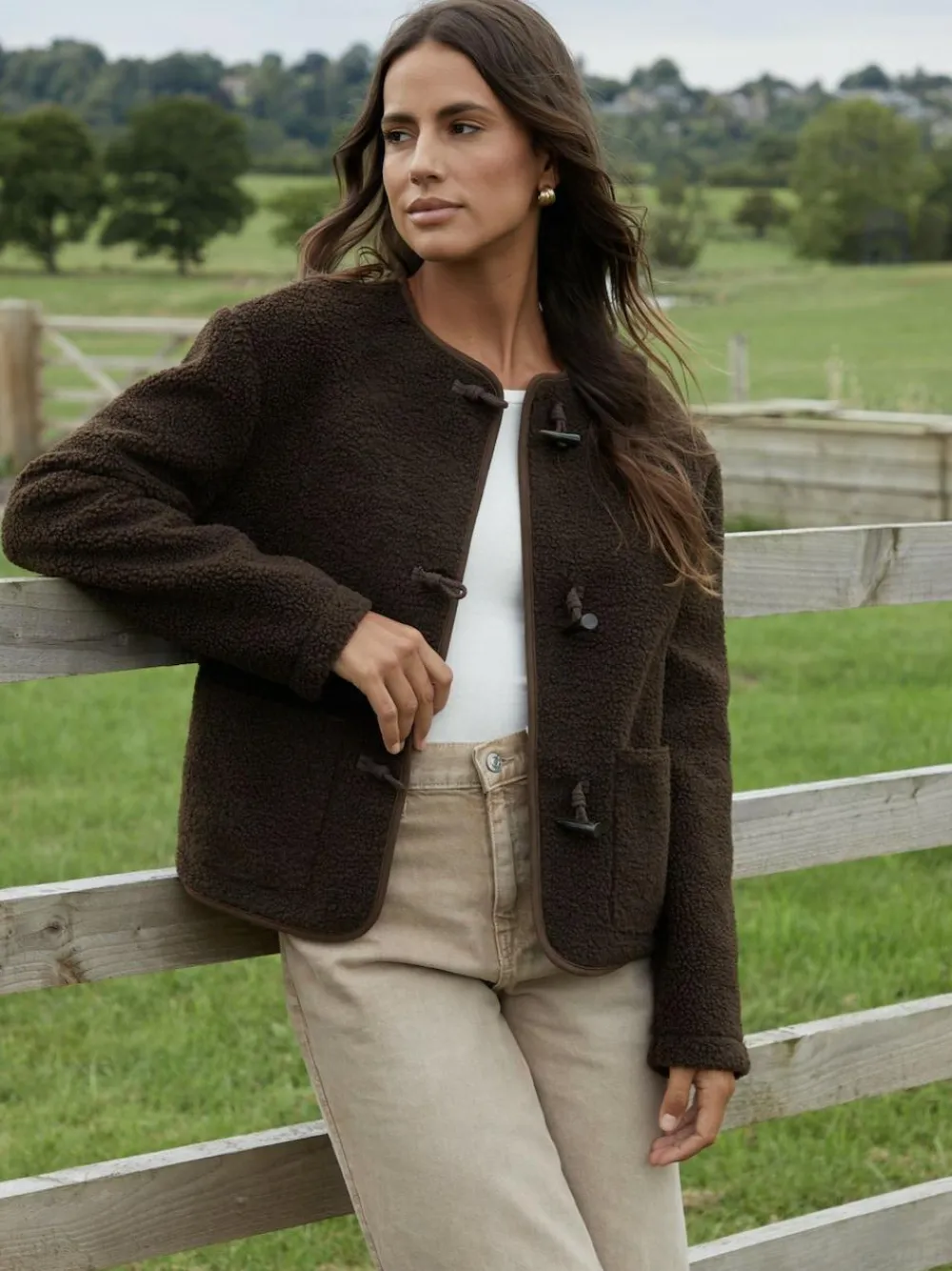 Sale Threadbare Borg Fleece Toggle Jacket Brown