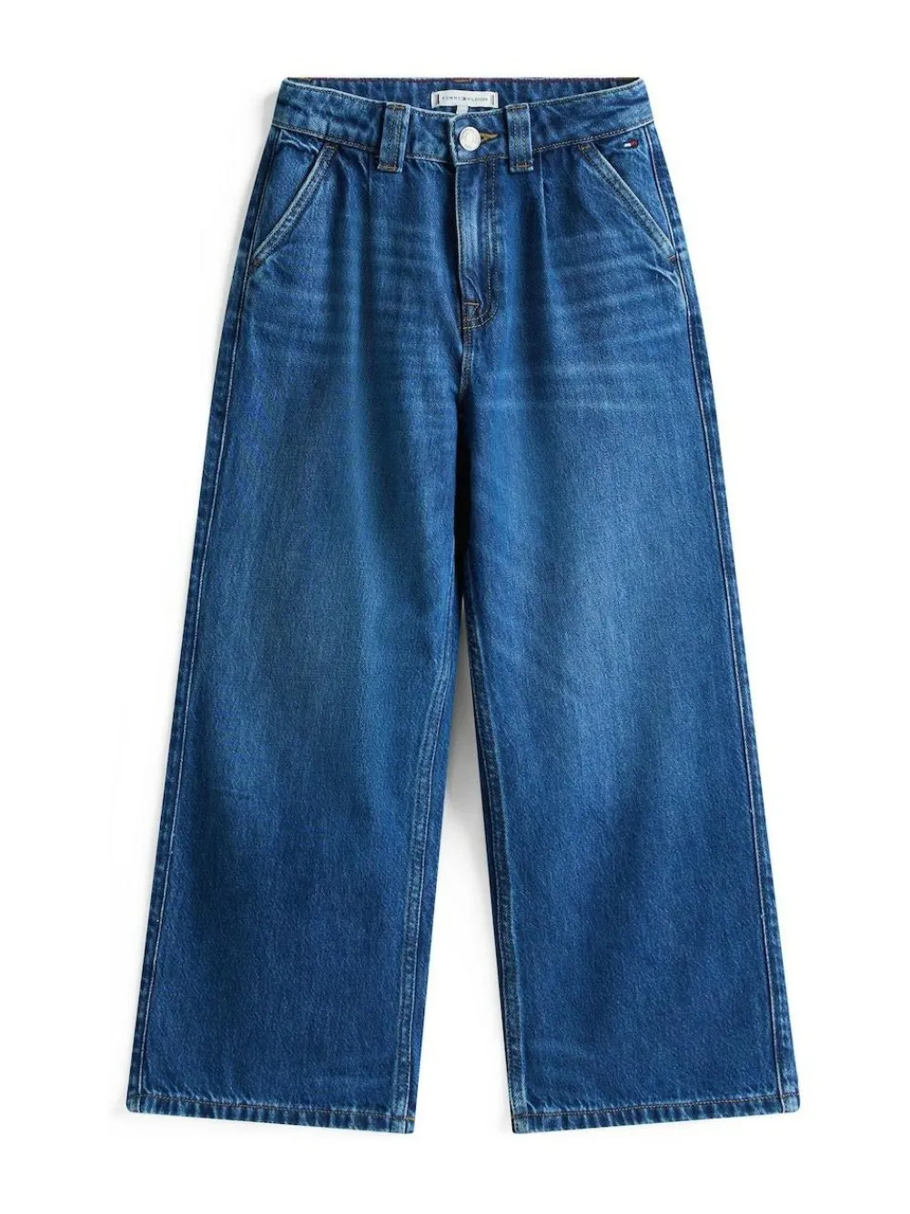 High rise and with the perfectly cut wide leg – the Mabel fit is effortlessly on-trend. These high-rise jeans have a wide-leg fit that s enhanced by stylish pleats on the front for a little extra flair. Highlights: Cotton blend denim. Pleats on front Darts on back. Zip with button closure Two side angled slip pockets Two patch back pockets Tommy Hilfiger branding Tommy Hilfiger flag embroidery on hip and back pocket Shape & fit. High rise waist Wide leg Machine washable. 41% Cotton, 39% Lyocell, 20% Recycled cotton.