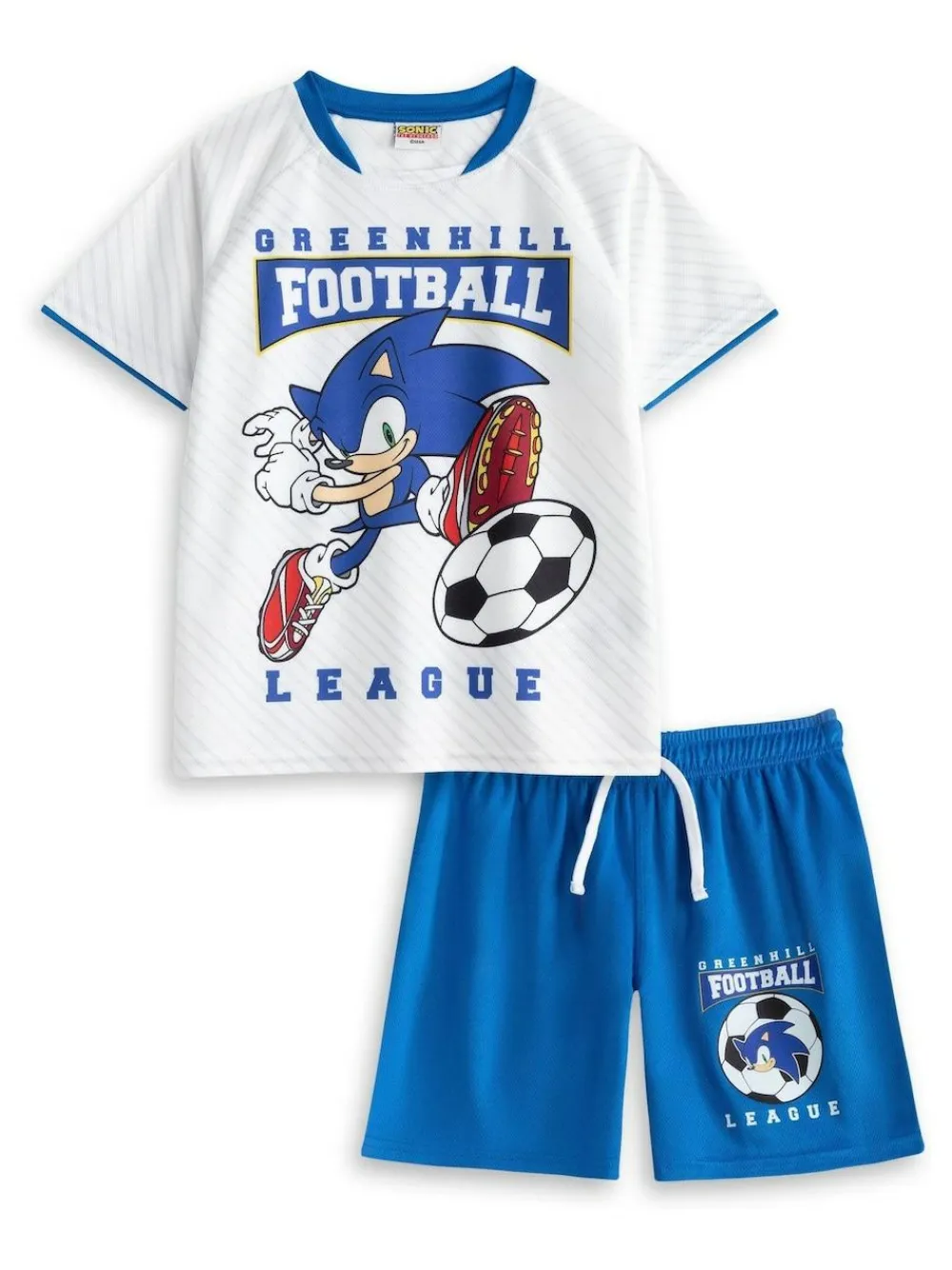 Unleash your child s inner speedster with the Sonic the Hedgehog Greenhill Football League Kit. This stylish two-piece set features a vibrant graphic design and breathable fabric, ensuring comfort and freedom of movement for an action-packed game or casual wear. Perfect for young fans, it s designed to inspire play and adventure! Machine washable. 100% Polyester.
