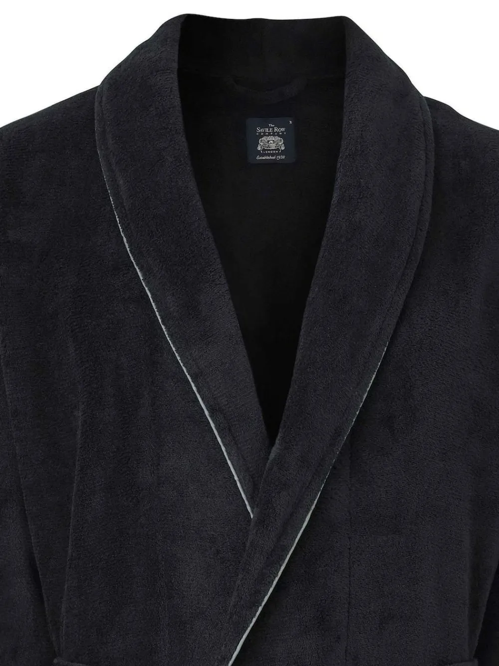 Savile Row Company Black Fleece Dressing Gown With Piping^ Bathrobe