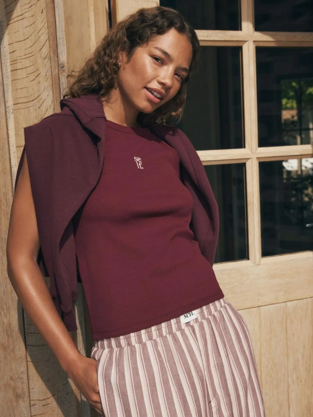 Be the first to review “self. Burgundy Red Stripe Ribbed Vest Top and Long Leg Pyjamas Set^Women Pyjamas|All Night & Lounge” Cancel reply