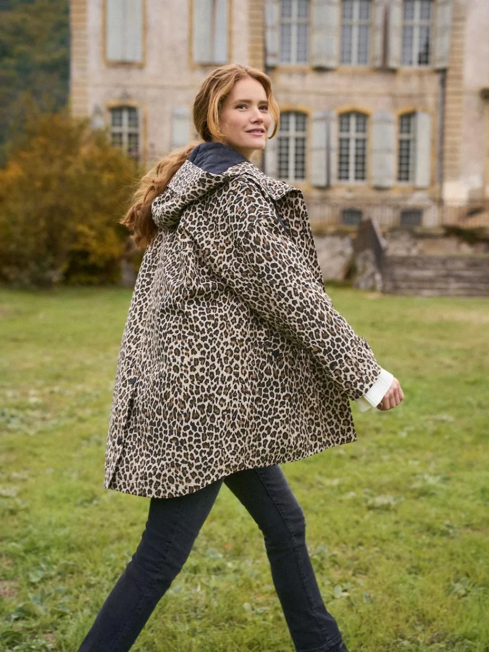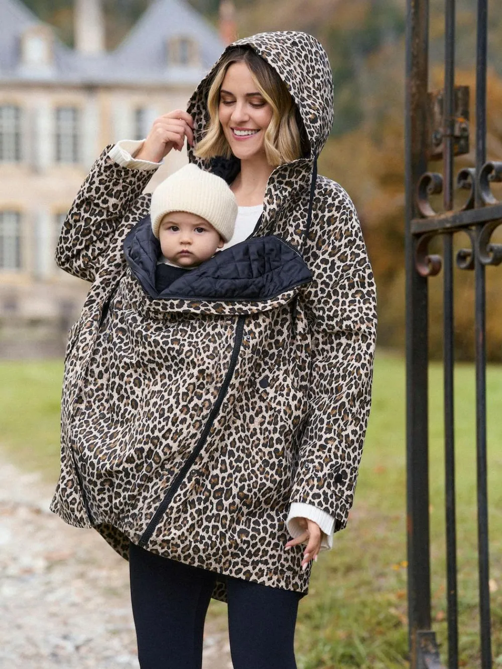 A Seraphine babywearing parka is a must for mums, and this one is waterproof. The easy fit grows with you through pregnancy. Then after baby is born, a game-changing kangaroo panel zips on at the front to keep your little one warm and dry in the baby carrier. Made in a waterproof cotton-blend fabric, this leopard print coat features a warm quilted lining and a fixed hood with a peaked cap and drawstring ties. Perfect for even the wettest of weather. 3 in 1 style for pregnancy, babywearing and after Easy fit – allows room to grow Zip-on kangaroo panel fits over a baby carrier or sling Waterproof cotton blend fabric Warm quilted lining Fixed hood with peaked cap and drawstring Buy your pre-pregnancy size. With over 20 years of maternity expertise, Seraphine styles are designed to grow with you, adapting with you through pregnancy and motherhood. Shell 62% Cotton, 38% Polyester. Lining 100% Polyester.