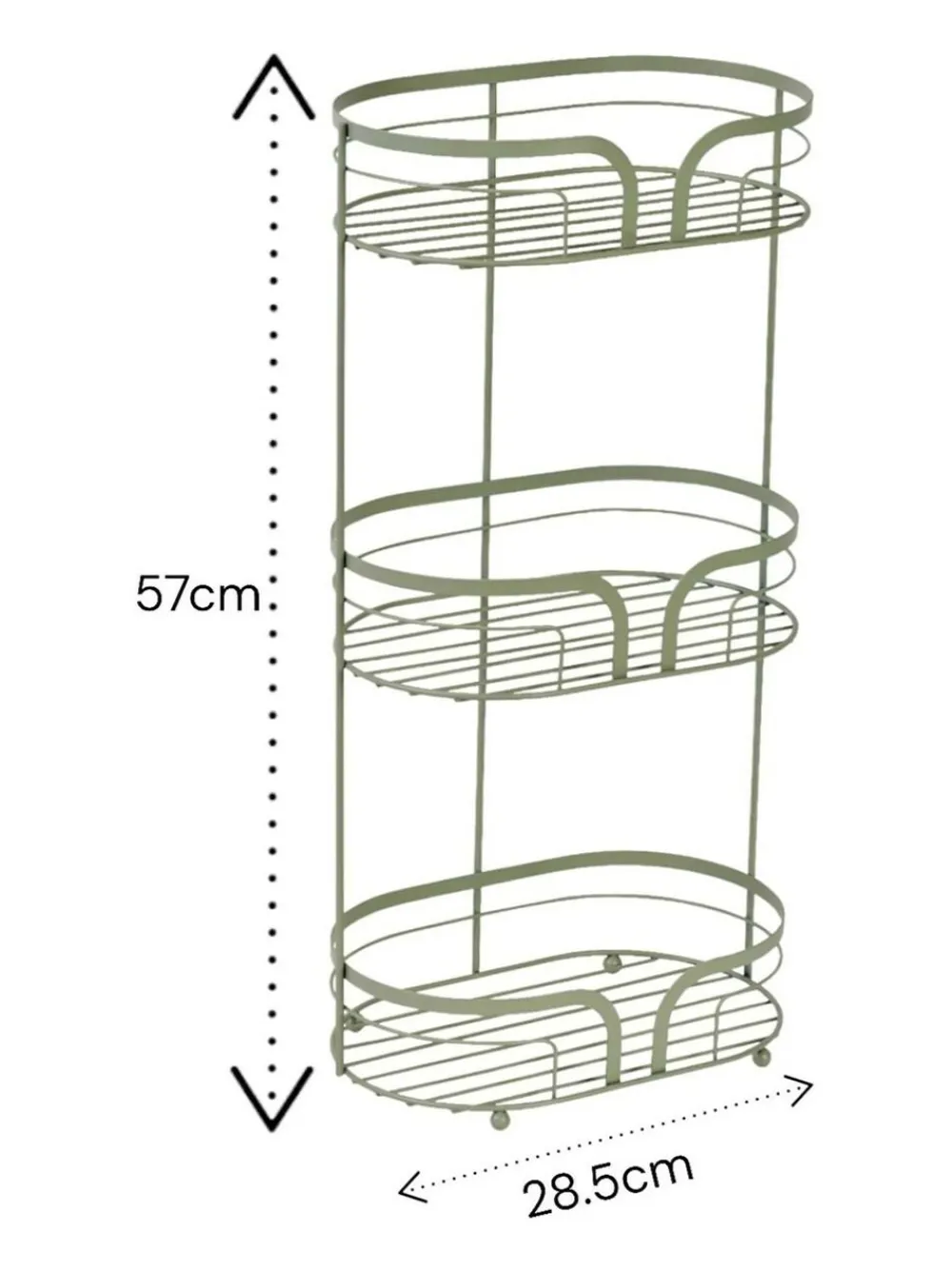 The freestanding Dante Floor Caddy solves your Bathroom storage problems with three baskets ready to house your toiletries: soaps, shampoos and sponges. Crafted from wire steel with powder coated matt Sage Green finish, this Floor Caddy is durable and long lasting. Dimensions: 57cm x 28.5cm x 18.5cm Size: ONE. Height 57cm Width 28.5cm Depth 18.5cm Wipe clean only.
