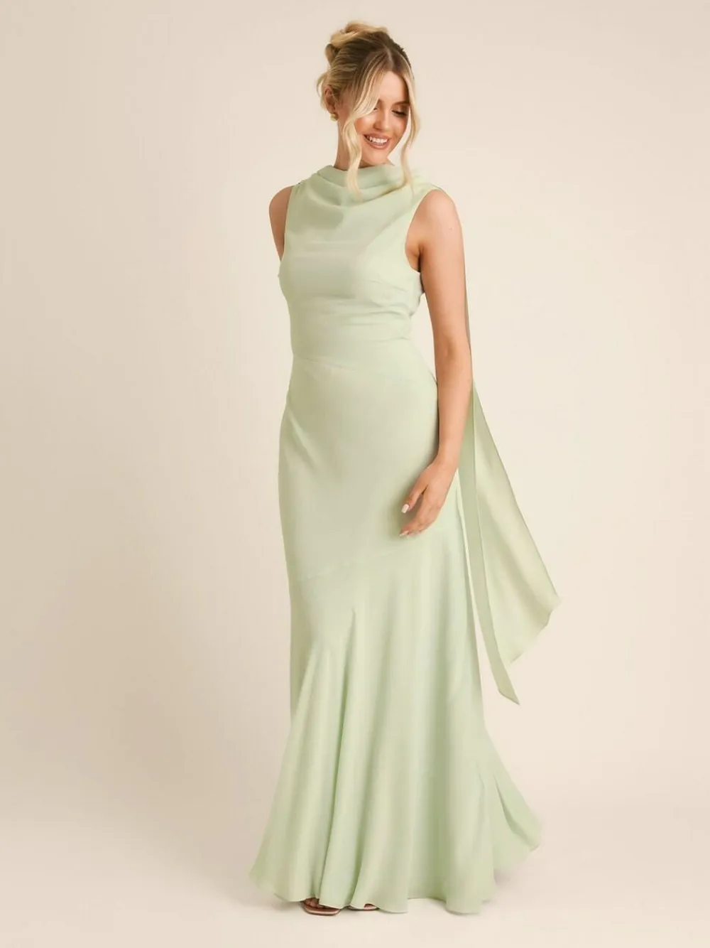 Six Stories Green High Cowl Neck Drape Crepe Bridesmaid Dress^Women Maxi Dresses|Occasion Dresses
