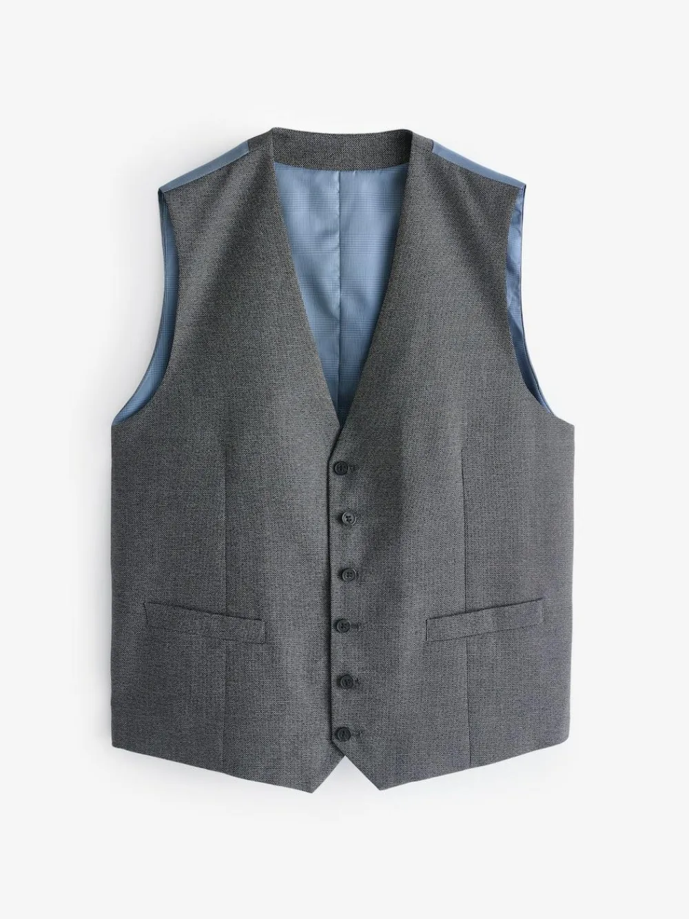 I’m Harcourt, a heritage-inspired single-breasted suit waistcoat in a rich grey textured tweed effect fabric. I’m perfect for the office, wedding, or any formal occasion! My features include distinctive grey buttons, lower waist welt pockets, a blue check inner lining, and tonal grey outer lining with an adjustable back strap. Wear me with the Skopes Harcourt Grey. Tailored Fit Suit Jacket and Skopes Harcourt Grey Tailored Fit Suit Trousers to complete the look Dry clean only 82% Polyester, 18% Viscose Dry clean only. 82% Polyester, 18% Viscose.